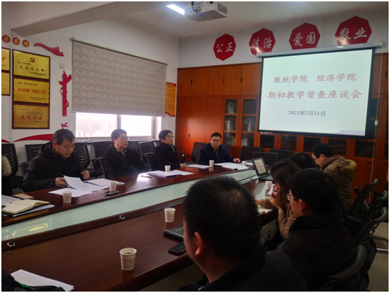 (本网讯)2月21日上午,数学与统计学院和经济学院在办公楼809会议室联合召开期初教学督查座谈会。校长刘长庚主持会议,科研处、审计处负责人,数学与统计学院、经济学院领导班子成员,教师代表参加。会议现场与会成...