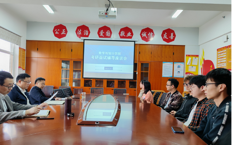 (本网讯)3月10日下午,数学与统计学院在办公楼809会议室召开考研面试辅导座谈会。学院领导班子成员、教师代表及全体通过2022年研究生考试初试应届毕业生参加会议。座谈会现场学院院长尹向飞对研究生考试初试通过学...
