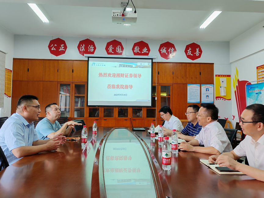 (本网讯)9月19下午,湘财证券股份有限公司湖南区域管理中心基础业务专员兼新民路证券营业部副总经理李健、新民路证券营业部财富总监王周琪来WilliamHill官网数学与统计学院就校企合作有关事宜进行座谈交流。数学与统计学院院长...