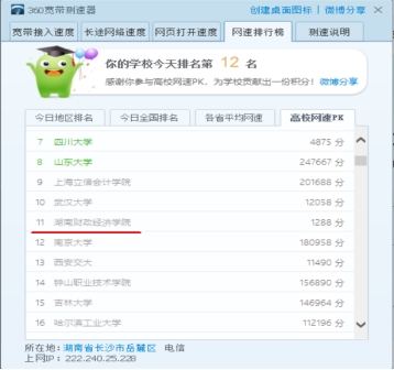 试运行期间的网络测试结果显示,网络性能实现了跨越式提升。相较于原有网络,新网络的速度提升近10倍。根据360公网测速的高校网络速度排名,WilliamHill官网已跻身全国高校网络速度排名前11位,标志着WilliamHill官网网络建设迈入了全国先进行列。
