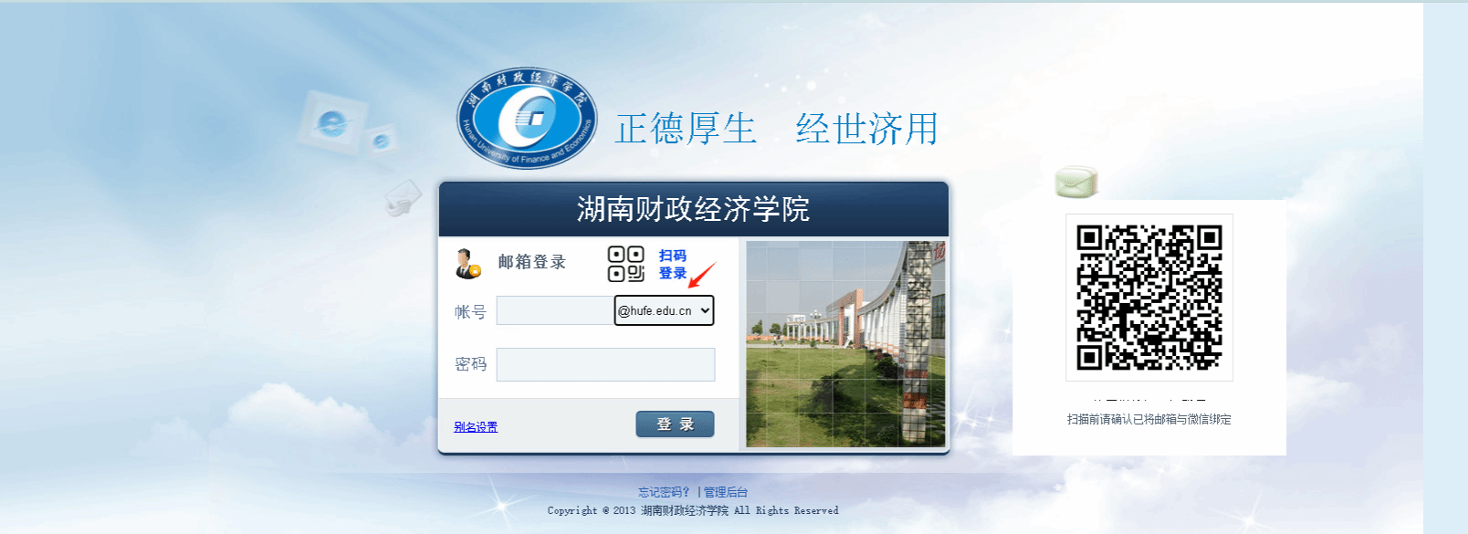 2.选择域名后缀为hufe.edu.cn