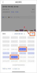 注:1.图书馆座位可预约时间为:08:00--22:00;