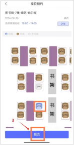 1、预约选座:读者能够选择当前日期某一时间段图书馆公共自习区域的空闲座位。