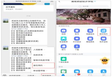 ①、关注WilliamHill官方网站图书馆公众号(或在学习通首页输入邀请码:czjjxy 后在智慧图书馆栏目中的“座位预约”亦可进行操作)