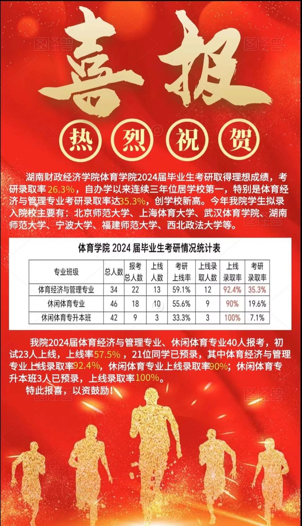 湖南财政财政经济学院体育学院坐落于岳麓山下,梅溪湖旁,与西湖公园相伴,地铁二号线直达。现有专任教师47人。其中高级职称16人,博士17人,世界冠军、全国冠军4人。近年来主持国家社科、省部级重大重点等课题 30 多项,获省级科研、教研成果奖4项,获教育部、湖南省等教师课堂教学竞赛一、二等奖6项。