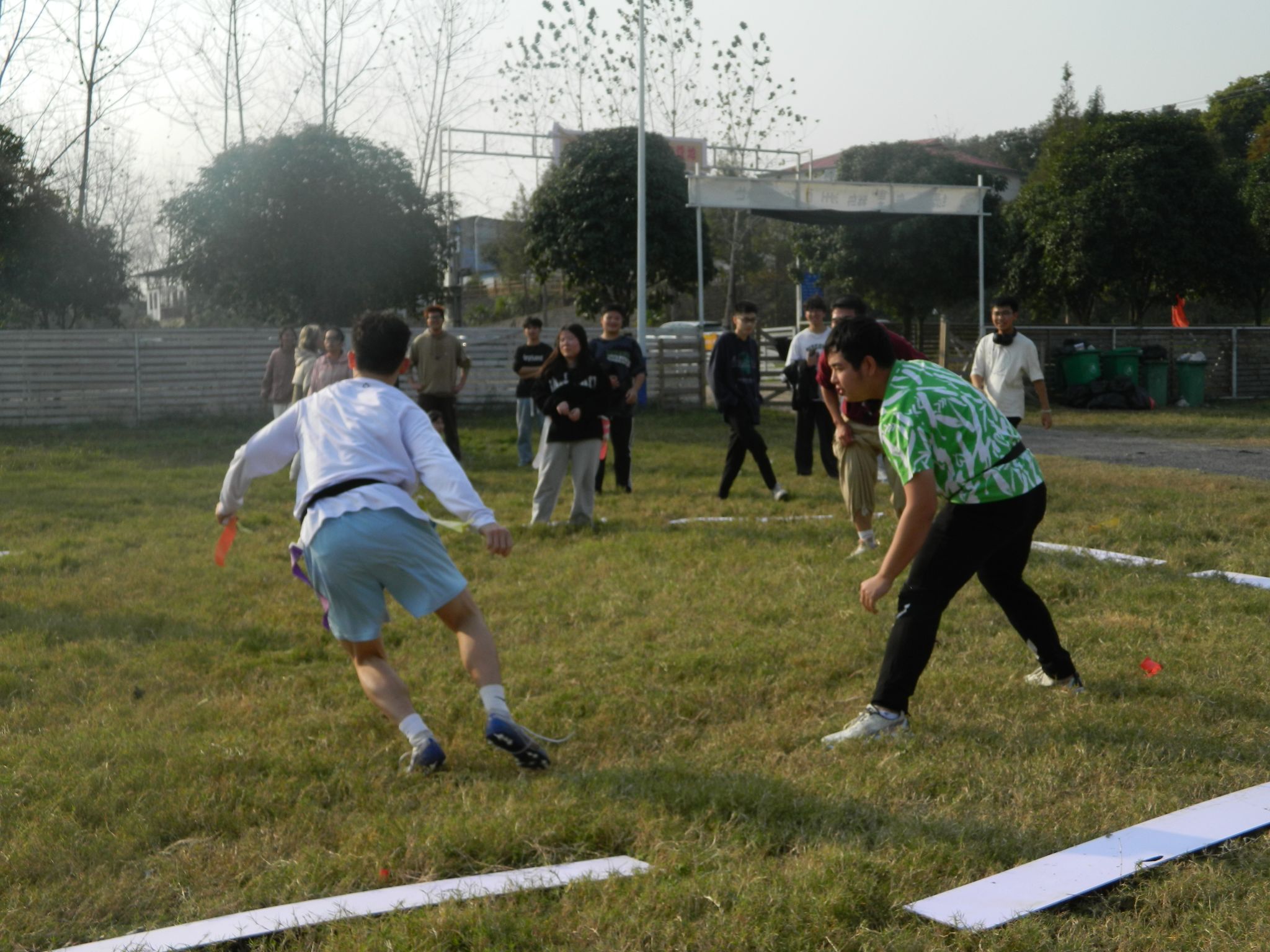 活动内容包括户外徒步、趣味飞盘、腰旗橄榄球、气排球、自助烧烤、篝火晚会等项目。徒步过程中,同学们一边游览着鹅洲岛的自然美景,一边与好友谈论自身感受与体会,已然不知徒步时间流逝飞快。而在飞盘与腰旗橄榄球项目中,讲究的是同学们的敏锐度与体适能,一次次闪躲和追击,跳跃和奔跑,展现了同学们对竞赛的认真态度与对体育运动充满的激情活力。气排球比赛过程中,紧张激烈的氛围促进大家不停的跑位、精准击球、协助传球,而这些都能很好促进小组团结合作。除了这些活动,学院还特意为同学们设置了自主体验项目——扁带运动,同学们纷纷表示感受到了空中平衡的困难。