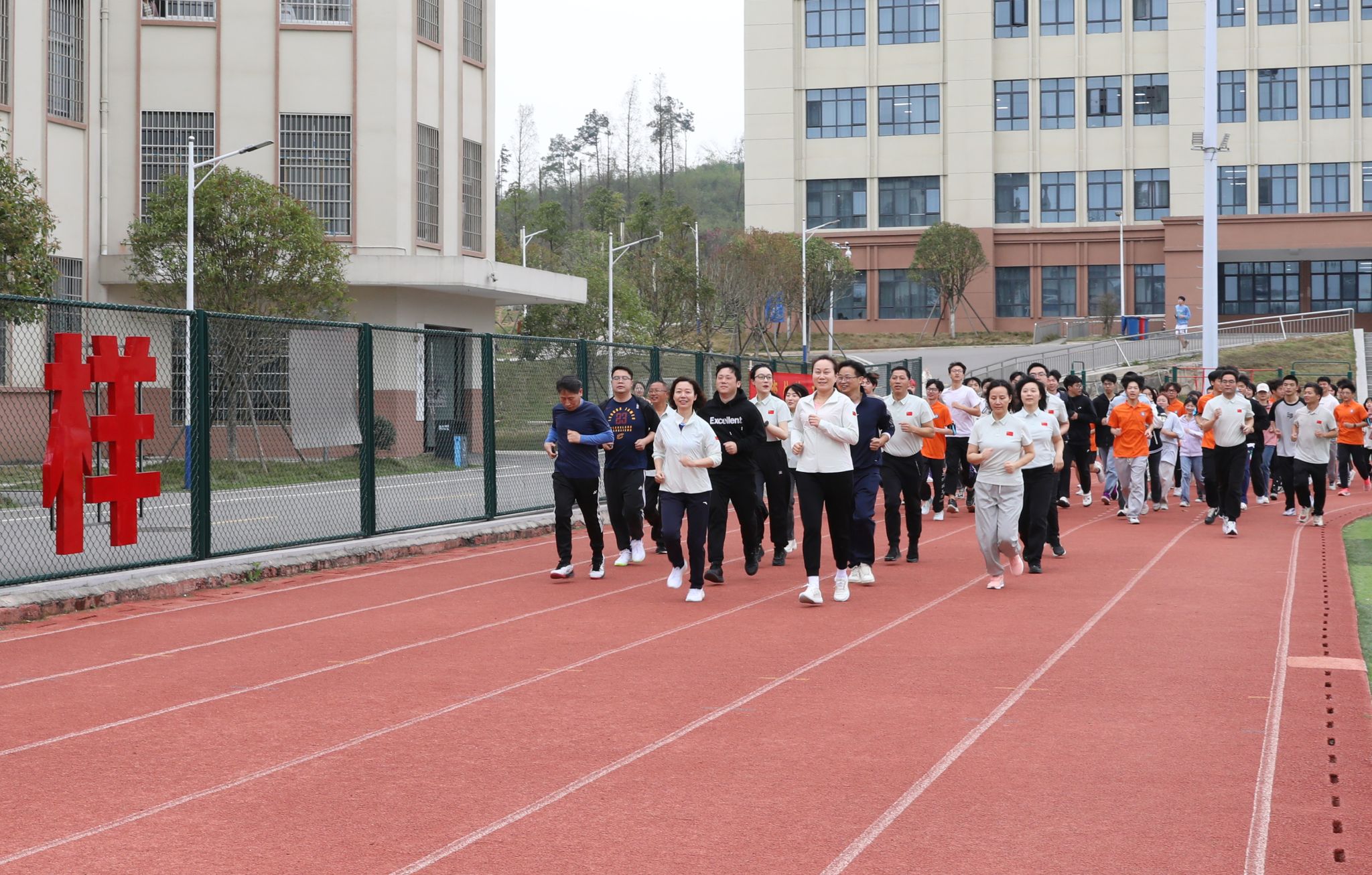 全体校园跑志愿者列队进入跑道,由杨兰英、苏玲领跑,郭国强鸣枪发令开跑。随着发令枪枪声响起,师生们挥动双臂,迈动双腿,以奋斗者的姿态,奔跑者的热情踏上建设体育强国的新征程。