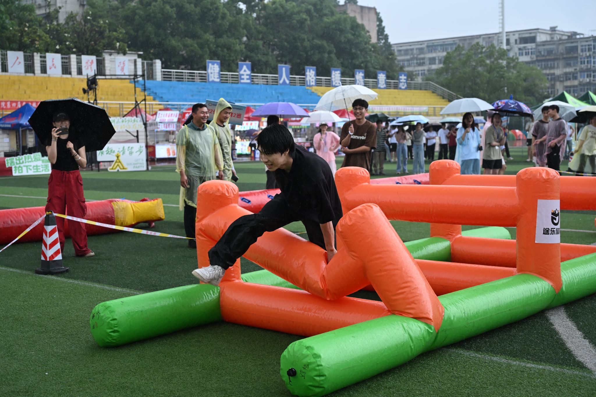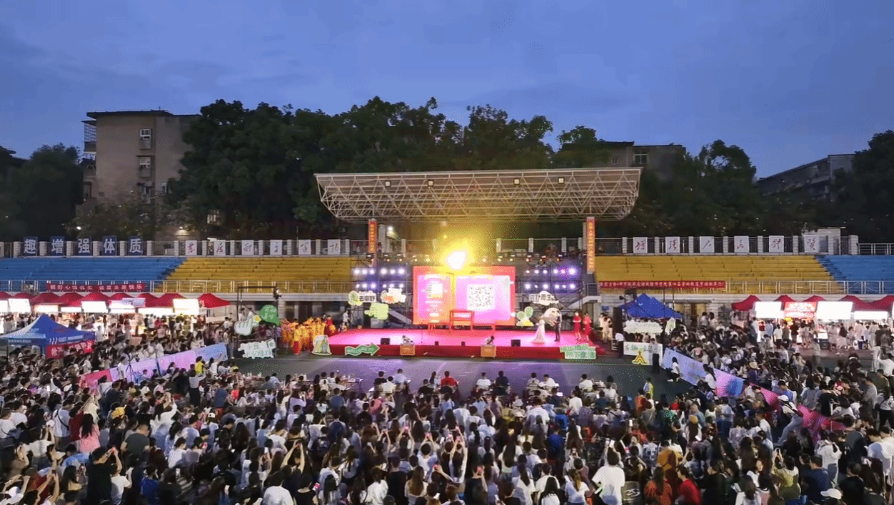 以“遥望未来,鼎力前行”为主题的校园营地帐篷节,总投资预计逾40万元,40余家商铺入驻活动现场,两天人流量高达6万人次。从美食小铺到创意市集,从互动体验区到运动装备展示,每一处都人头攒动,活力四射,不仅见证了校园活动的空前盛况,更引领了一股“体育+消费”的新兴潮流,展现了体育运动非凡的吸引力与凝聚力。