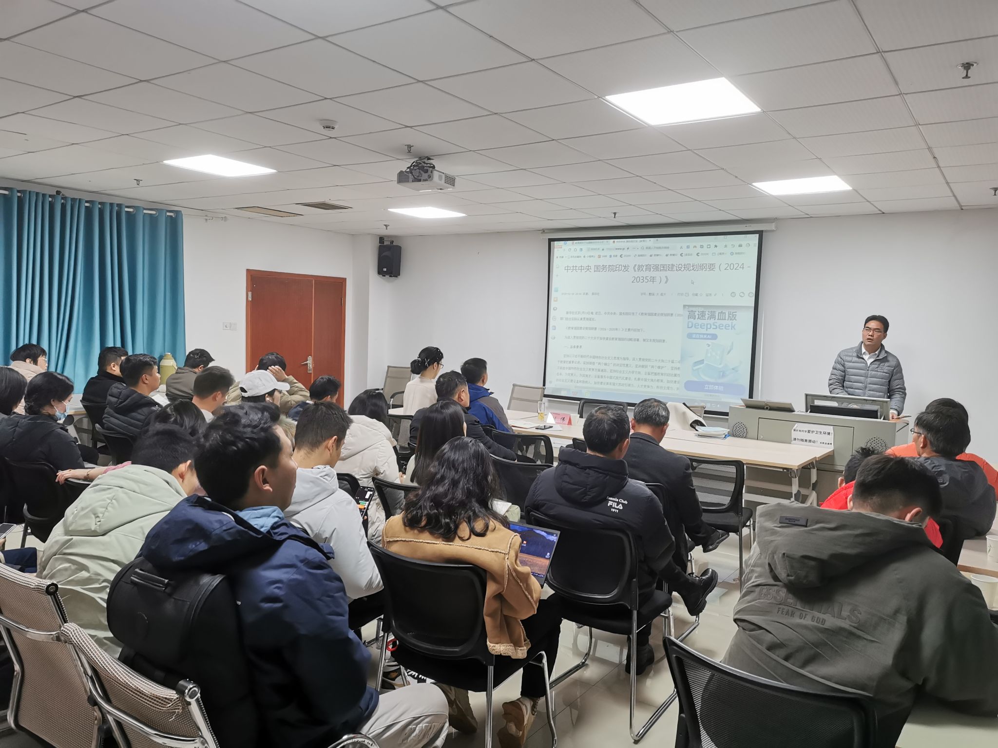 最后刘伟带领全院教职工学习了《教育强国建设规划纲要(2024-2035年》,要求全院教职工要热爱学习、坚持学习;勉励务实,争创品牌;教研并进,深化内涵,坚持体育教学改革创立体育学院品牌。