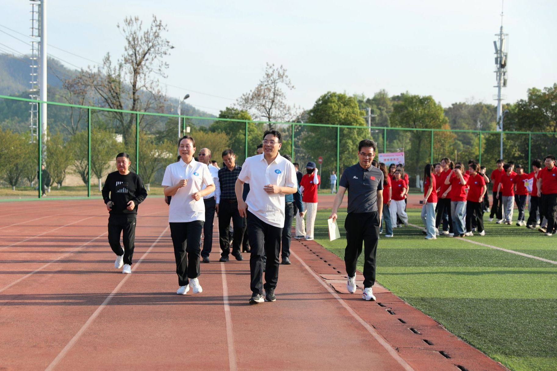仪式核心环节“健步走运动打卡活动”将现场气氛推向高潮。在400米环形跑道上,“膳食营养”“作息规律”“健康运动”三大主题打卡站化身为沉浸式健康课堂,通过醒目的标语、志愿者宣讲健康知识,向参与者传递科学减重理念,倡导健康生活方式,并为每个人制定个性化的减重处方。校领导们以身作则,带领师生们在跑道上迈出了健康生活的第一步,形成了一道充满活力的风景线。现场一名学生感叹:“这不是走过场的仪式,而是能把知识‘带回家’的健康嘉年华!”。