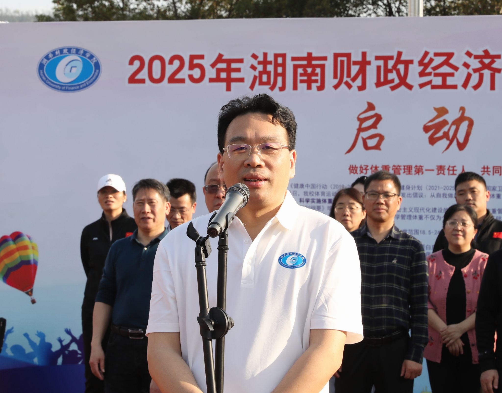 启动仪式上,学校体育运动委员会发布了《体重管理倡议书》,呼吁全校师生从膳食、运动、作息三方面践行健康生活方式。校党委书记易棉阳致辞并宣布“体重管理年”正式启动。他强调,健康是个人发展的基石,也是学校育人的重要目标。开展此次活动,旨在号召全体师生管好体重、管好健康,为学校发展、为中国式现代化建设贡献力量。