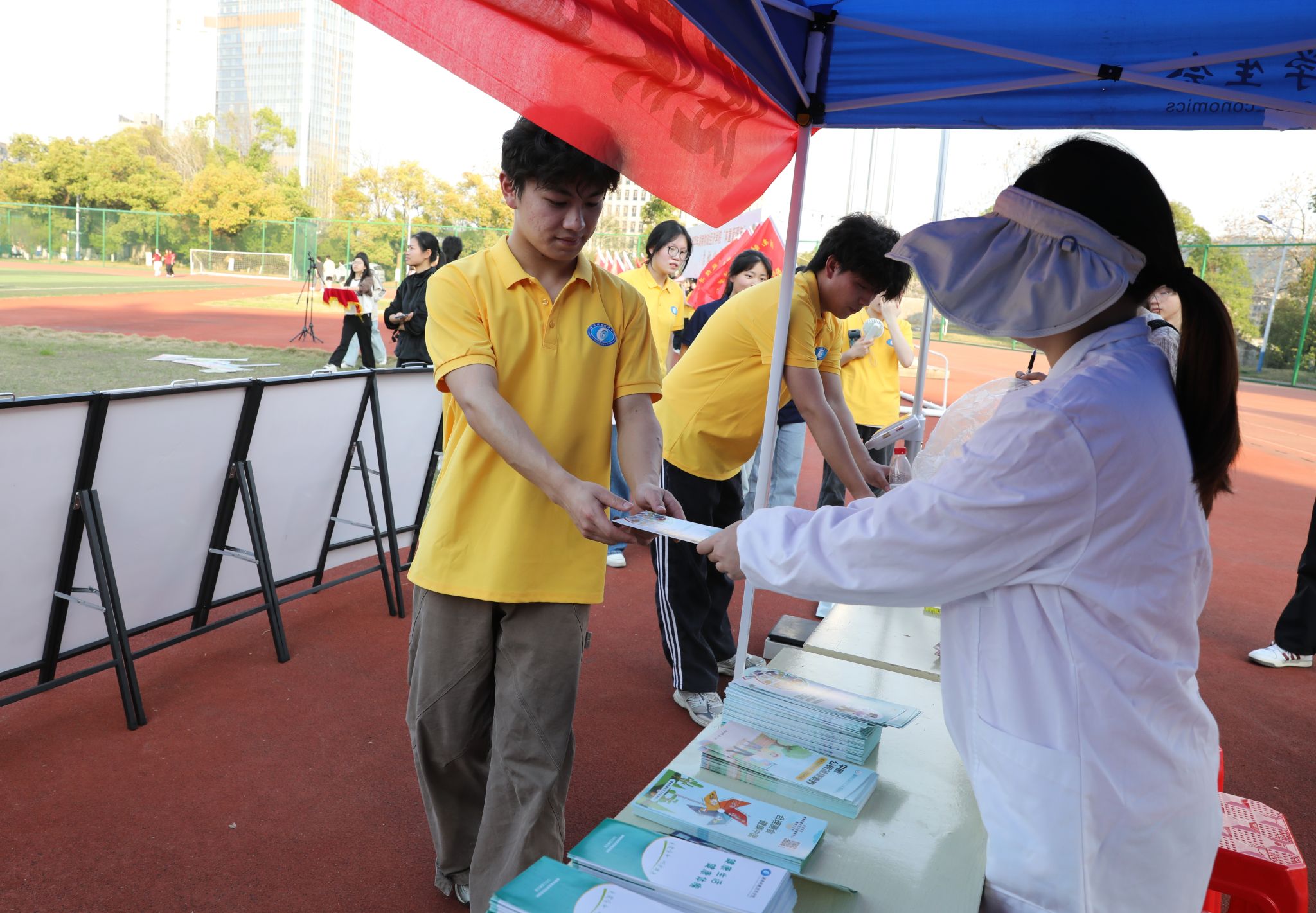 学生领取宣传手册 何妍/摄