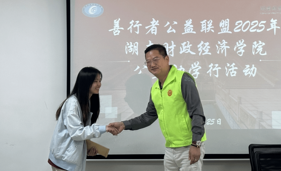 善行者联盟领队李志斌向学生捐助公益助学金