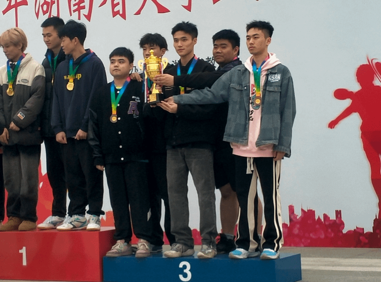 王帆、李雨禾、肖杰元、唐远卓、谢欣辰获得学院甲组男子团体季军
