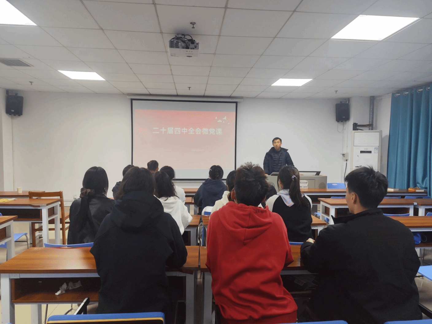 为深入学习贯彻党的二十届四中全会精神,准确把握国家发展脉络与新时代青年使命,11月12日下午,体育学院“学习贯彻党的二十届四中全会精神”主题党课学习活动在体育馆238教室顺利开展。本次活动由体育学院直属党支部副书记范则周主持,学院全体师生党员参加学习。