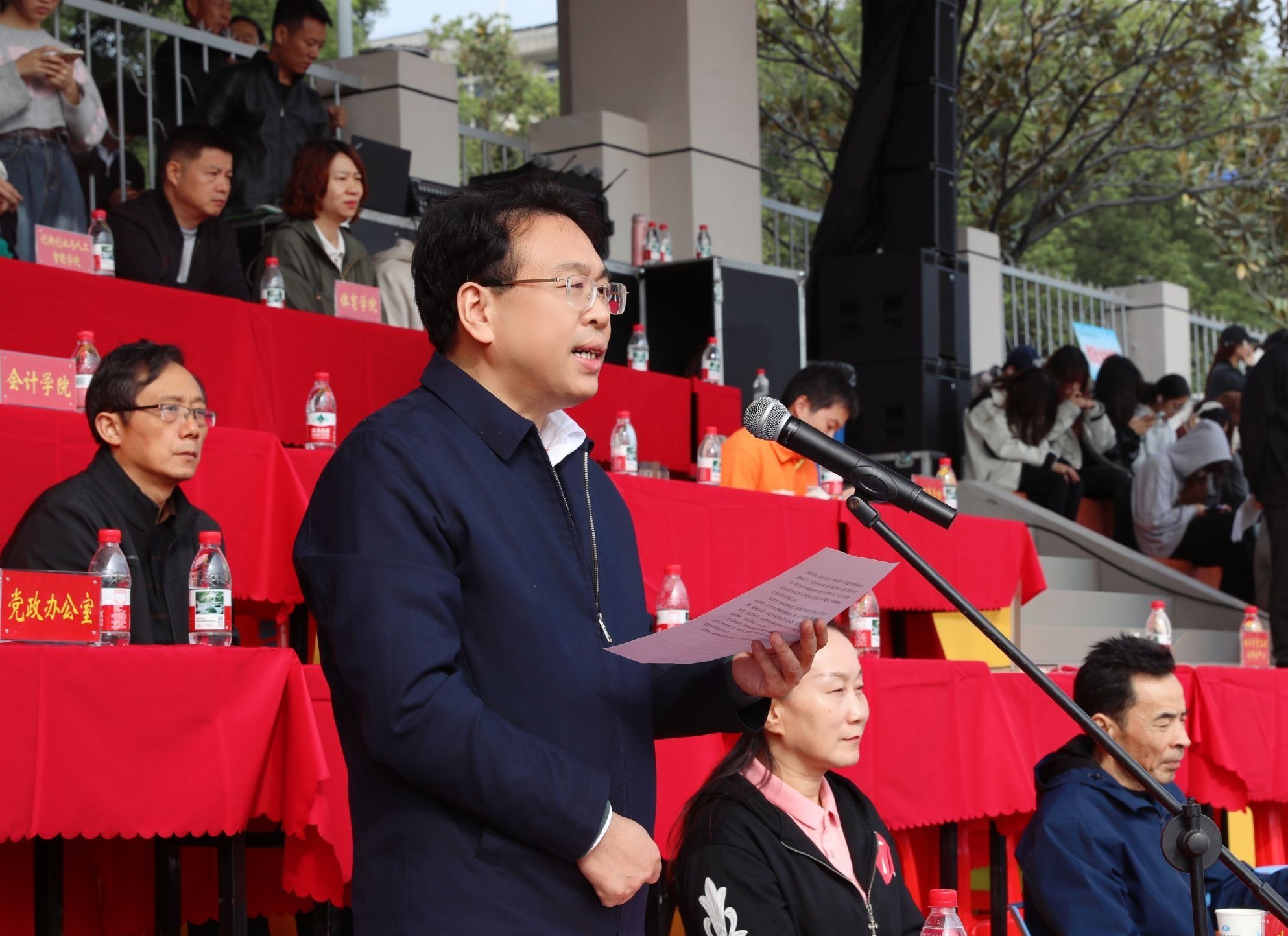 入场式结束后,开幕式由校党委委员、副校长、校体委主任潘爱民主持。全体师生庄严起立,国旗班步伐整齐地护送国旗入场。在雄壮的国歌声中,五星红旗冉冉升起,肃穆的氛围感染着全场每一个人。随后,运动员代表和裁判员代表依次上台宣誓,他们铿锵有力的誓言,承诺将公平竞技、公正执裁,为赛事奠定了诚信的基调。