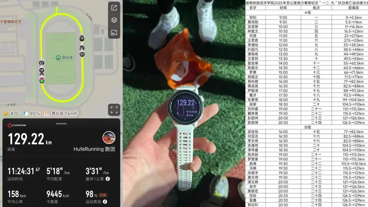 本次活动,没有专业运动员的门槛限制,40余名来自各学院的同学共同组成了一支接力队,他们历时11.5小时,完成了二十三棒的接力交接,最终用脚步丈量出129km的热血征程。他们以热血突破极限,用协作诠释担当,展示出了湖财青年强健体魄、铸牢信念的生动写照。赛道两旁,加油声与呐喊声交织,师生们用最热烈的掌声,为拼搏者鼓劲,为青春喝彩,让集体荣誉感在校园中激荡。