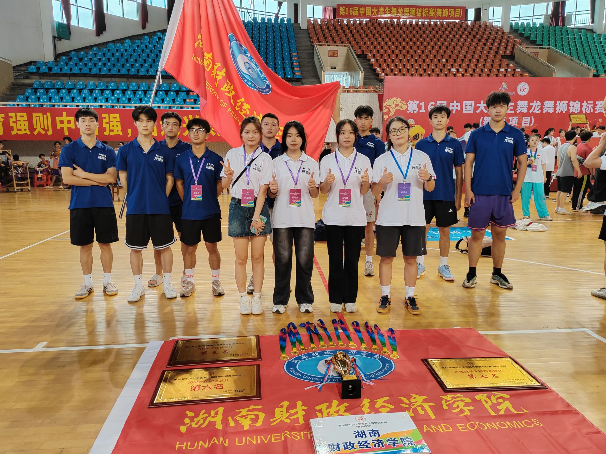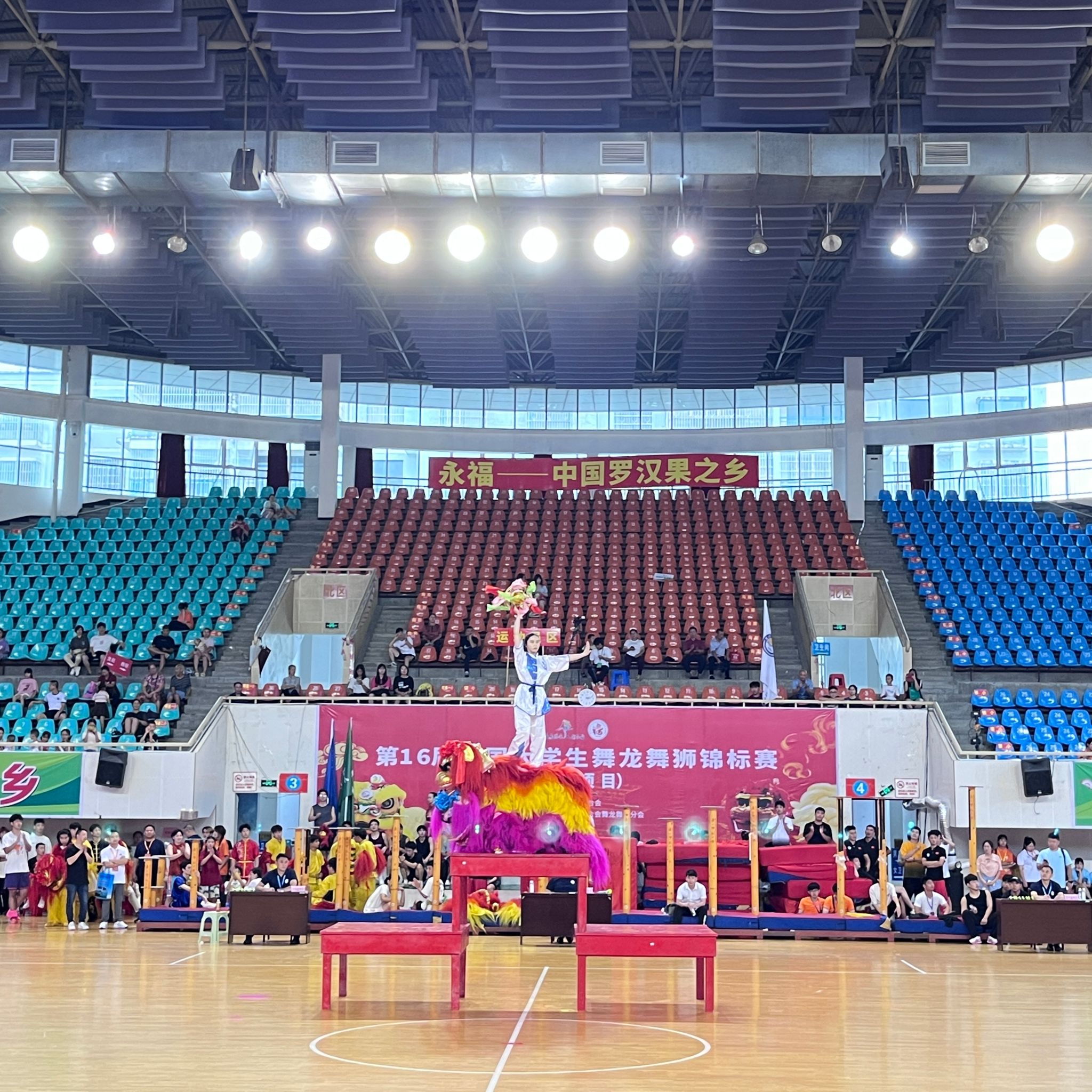 (本网讯)2024年7月29日,为期三天的第16届中国大学生舞龙舞狮锦标赛在广西永福县体育馆圆满收官。本次比赛由中国学生体育联合会主办、桂林市永福县人民政府承办,吸引了来自全国各地的44所高等院校的舞狮队共计600余名运动员参赛。WilliamHill官网舞龙舞狮队经过五个月的艰苦备战训练,组织女子运动员5名,男子运动员10名参加此次比赛。