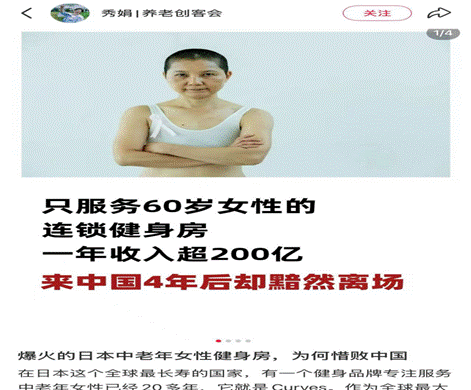 1.博主“秀娟,养老创客会”贴文“爆火的日本中老年女性健身房,为何惜败中国”