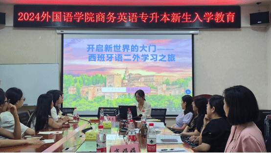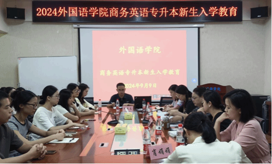 为了帮助新生更快地适应校园生活,深入了解校史校情,并科学规划未来的发展方向,9月9日下午14:30,外国语学院在办公楼315会议室组织召开了2024级商务英语专升本新生入学教育会议。出席会议的有院党委书记凌飞、党委副书记张鹏、副院长李曦、副院长汪小英、商务英语系主任邱高以及西语教师肖娟娟。全体2024级商务英语专升本新生参加此次会议。会议由新生辅导员胡文志主持。