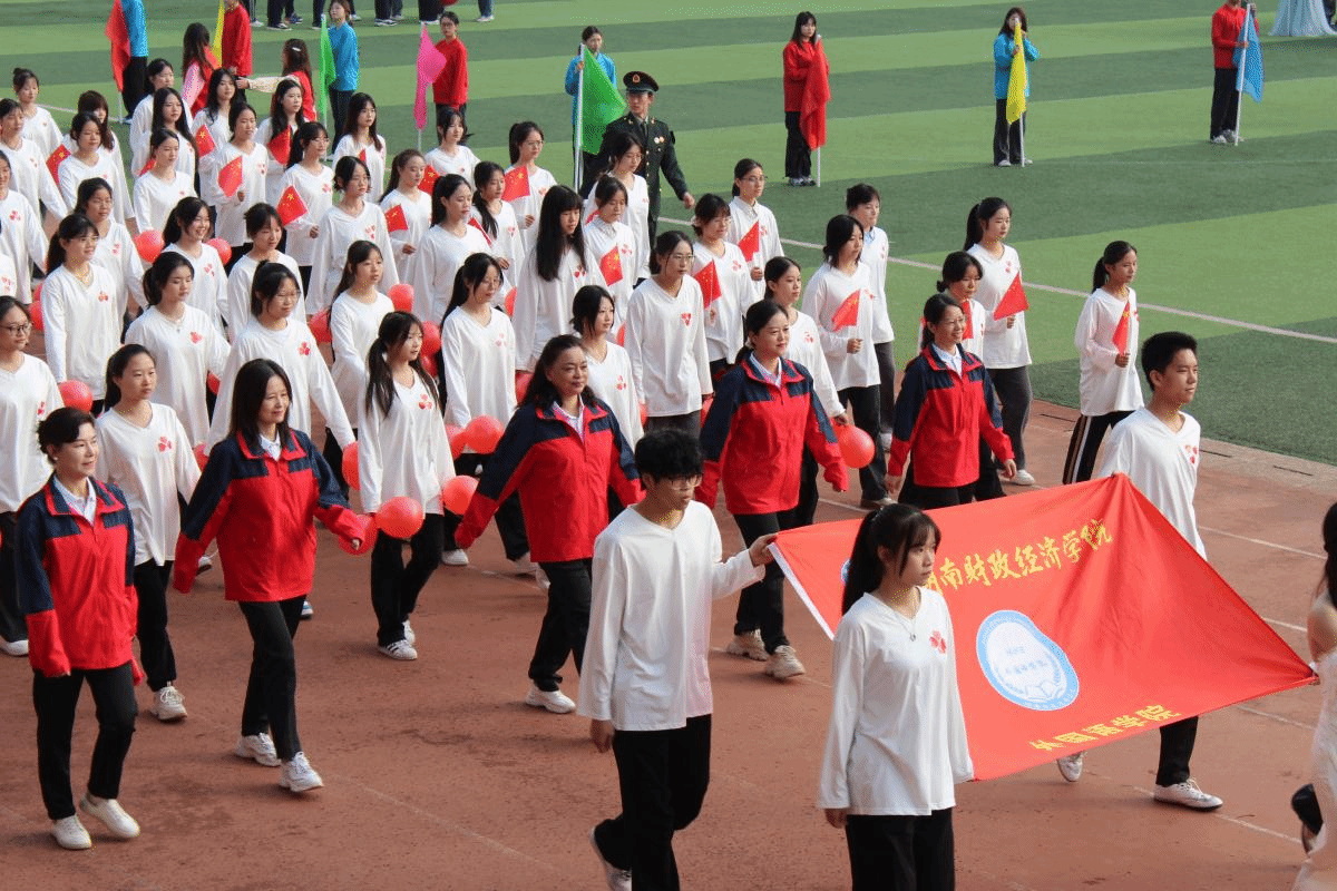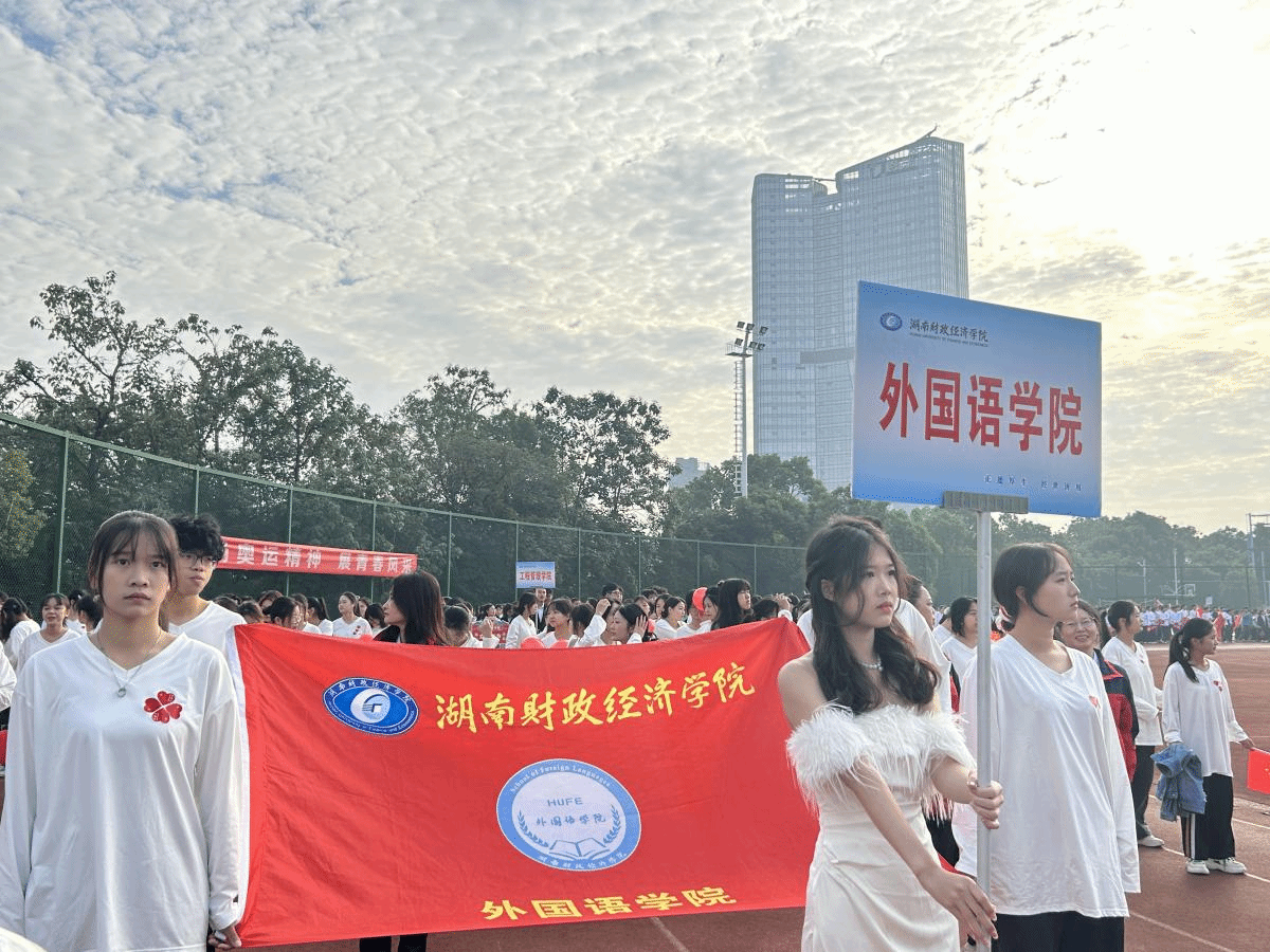 随着主持人激情洋溢的介绍:“踏着整齐划一的步伐,伴随着激昂响亮的口号,向我们走来的正是外国语学院方阵!”外国语学院的运动健儿们昂首阔步,步伐坚定有力,展现出外院学子特有的自信与风采,瞬间吸引了全场目光,赢得了观众席上阵阵热烈的掌声。