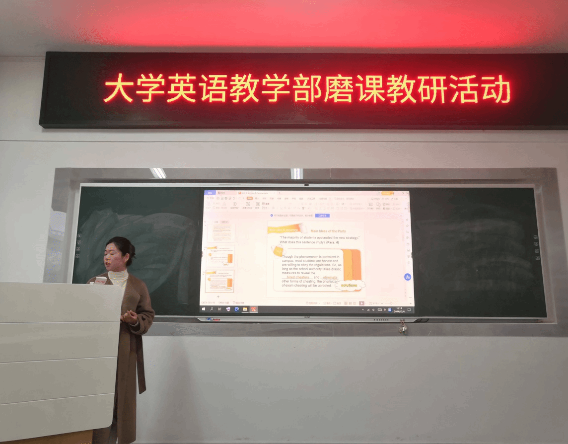 为了切实推进全员磨课、发挥教学名师模范引领作用,进一步打造大学英语金课,提高课堂教学质量,促进学校高质量发展,12月4日下午,大学英语一、二教学部在办公楼317举行了教学部磨课及评课活动。