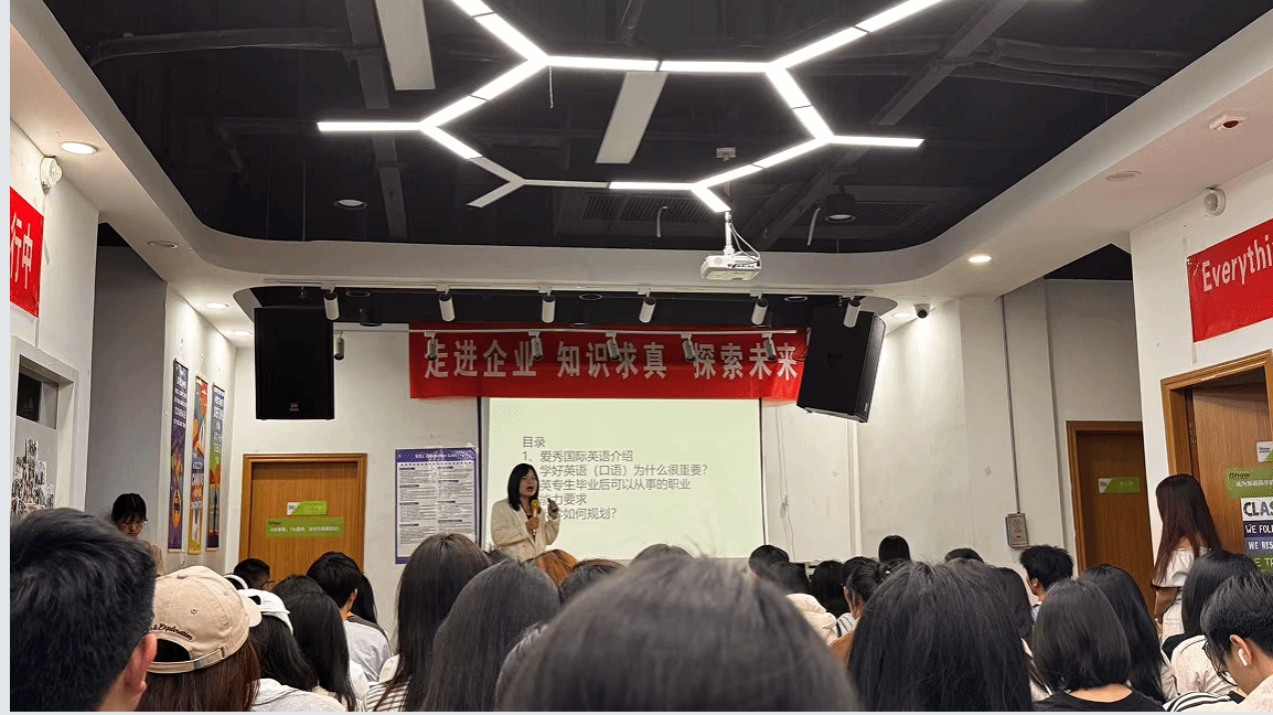 实习活动于下午2:20正式开始。爱秀国际英语的孙校长为学生们带来了一场内容丰富、生动实用的专题讲座。讲座围绕大学生如何度过充实而有收获的大学时光”“英语类专业的职业规划以及正确的语言学习方式等主题展开,结合企业实际案例,为学生提供了宝贵的经验和建议。学生们认真聆听,积极互动,现场气氛热烈。