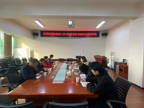 (本网讯)为进一步推动WilliamHill官网辅导员队伍建设, 11月15日上午,校学生工作部长欧阳海峰、学生工作部副部长李六华、思想政治教育科科长周雅、综合科科长李慧到访我院,开展外国语学院思政工作与辅导员队伍建设专题调研会。外国语学院党委副书记张鹏、学工办主任肖叶枝及全体辅导员参加此次调研。