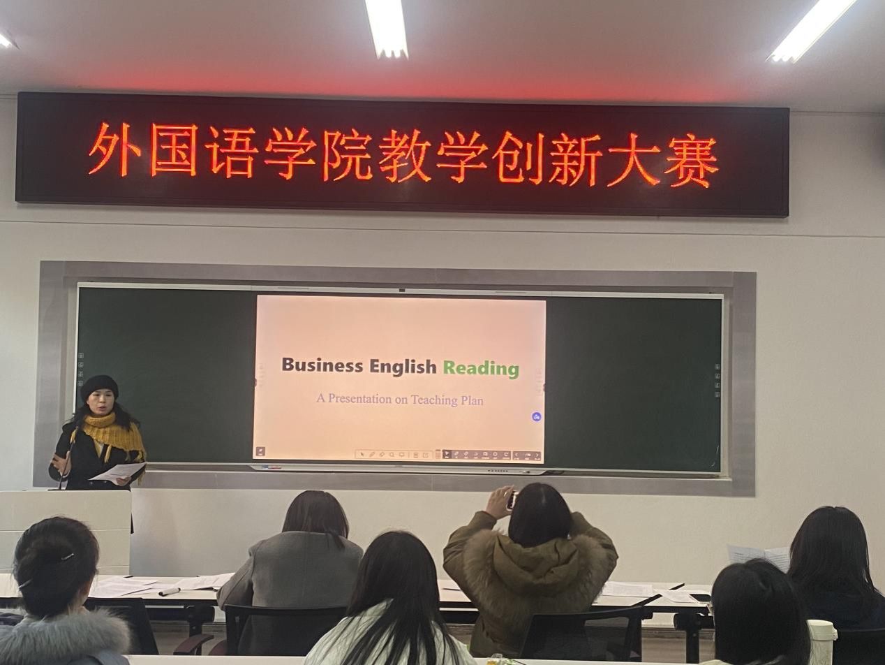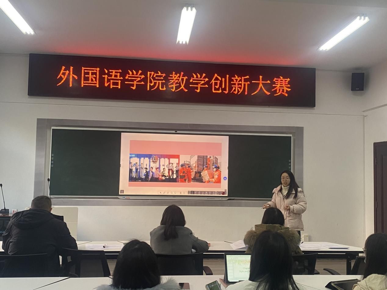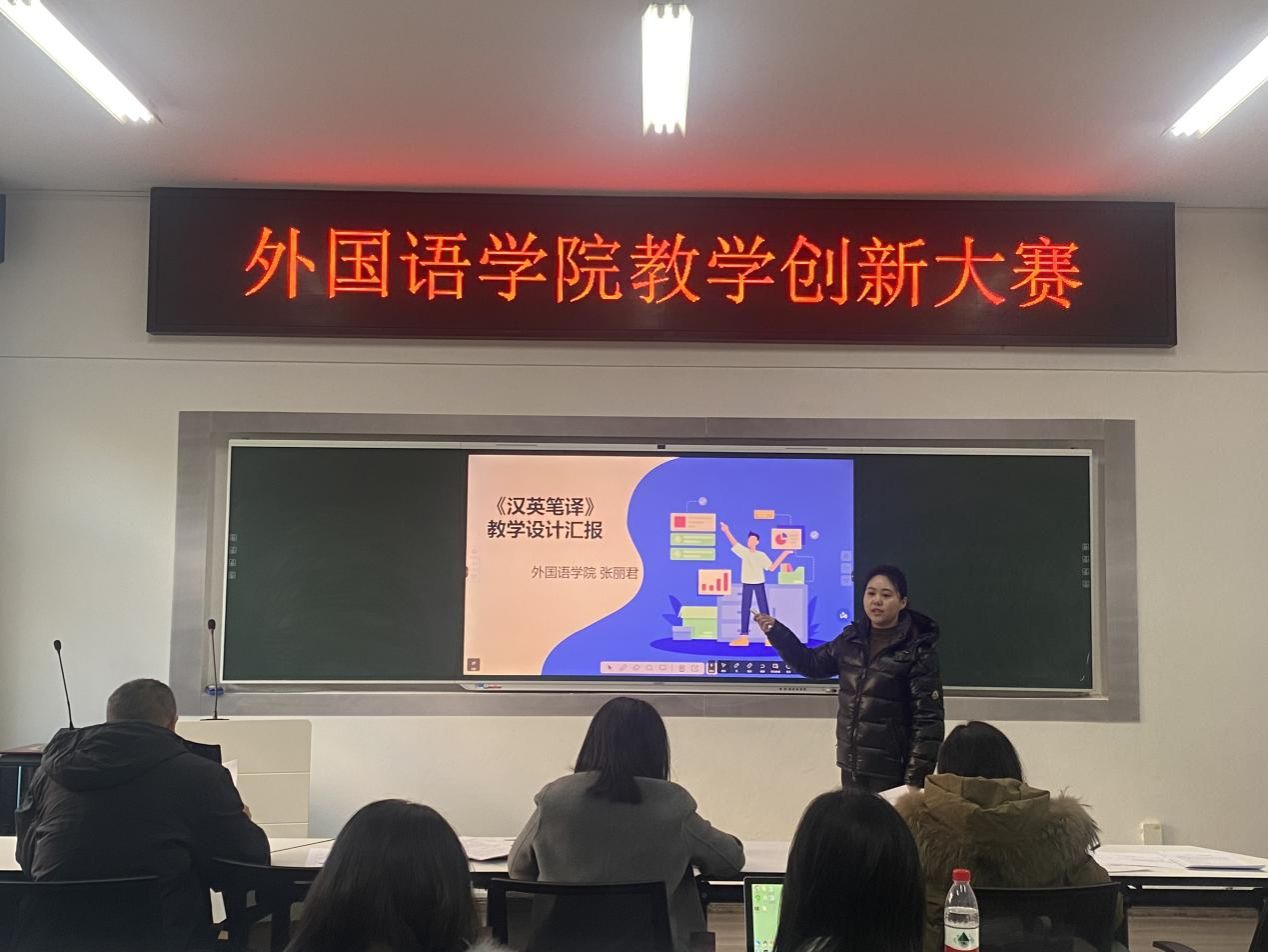 (本网讯)为鼓励和推动教师进行教学创新,提升教学质量,12月25日下午外国语学院在办公楼317举办教学创新大赛。共有5支教师团队参加比赛,外国语学院副院长李曦主持比赛。
