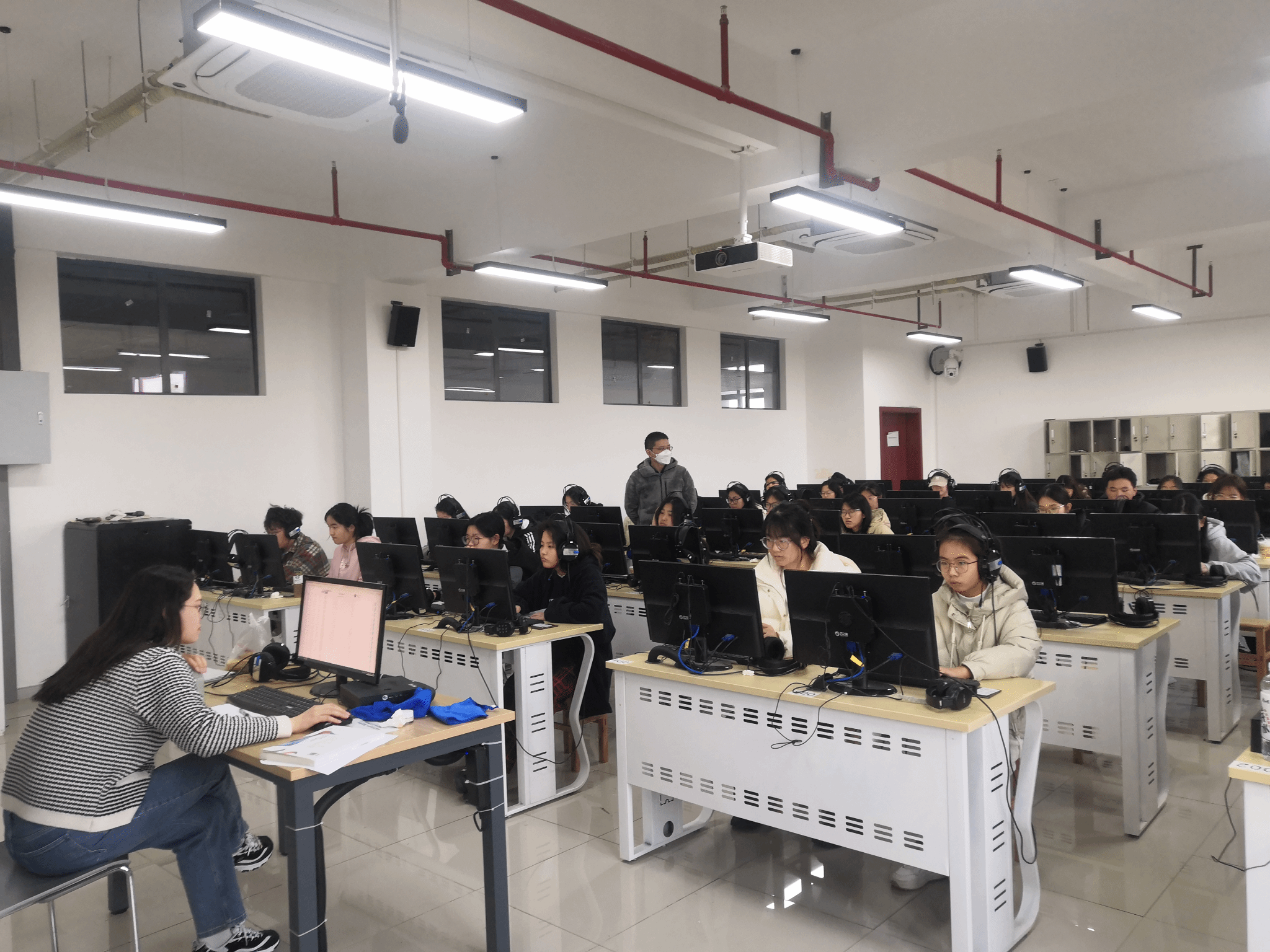 本次考试采用线下监考与线上监考相结合的模式,有效地维护了考试的严肃性和公正性。考试期间,学院工作小组多次巡查考场了解学生作答、设备运行情况。同时,大学外语教学部会同外研社itest平台技术人员、雷锋校区教科办与实验实训中心,通过监考微信群及时了解监考老师所反馈的问题。这些措施解决了考试过程中个别学生所出现的耳机、网络、登录等问题,保障了考试的顺利进行。