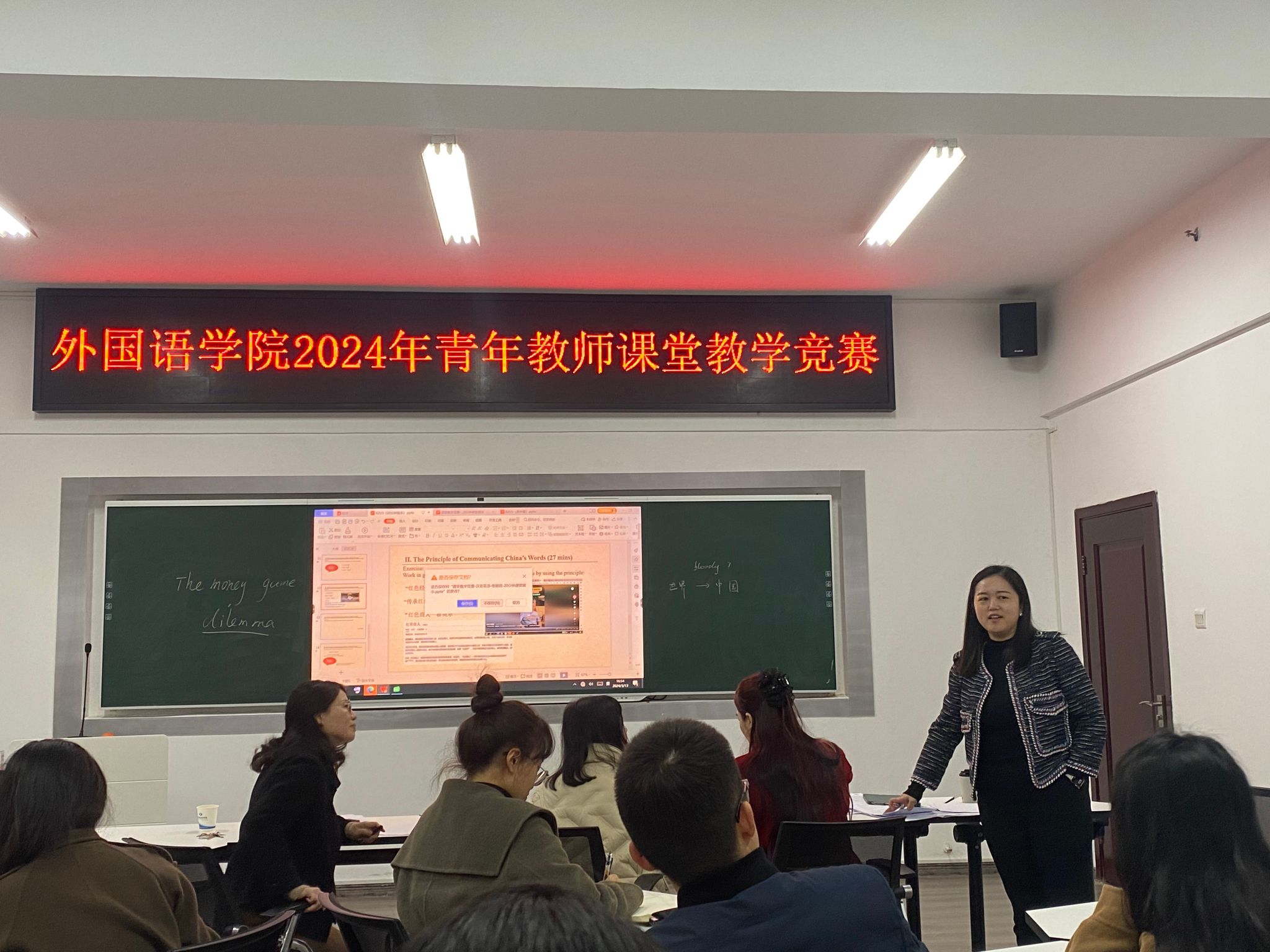 (本网讯)为进一步加强外国语学院的教师队伍建设,进一步提升学院青年教师教学能力与水平,促进青年教师专业发展,3月13日下午外国语学院在办公楼317举办2024年青年教师课堂教学竞赛。共有5支教师团队参加比赛,副院长李曦主持比赛。
