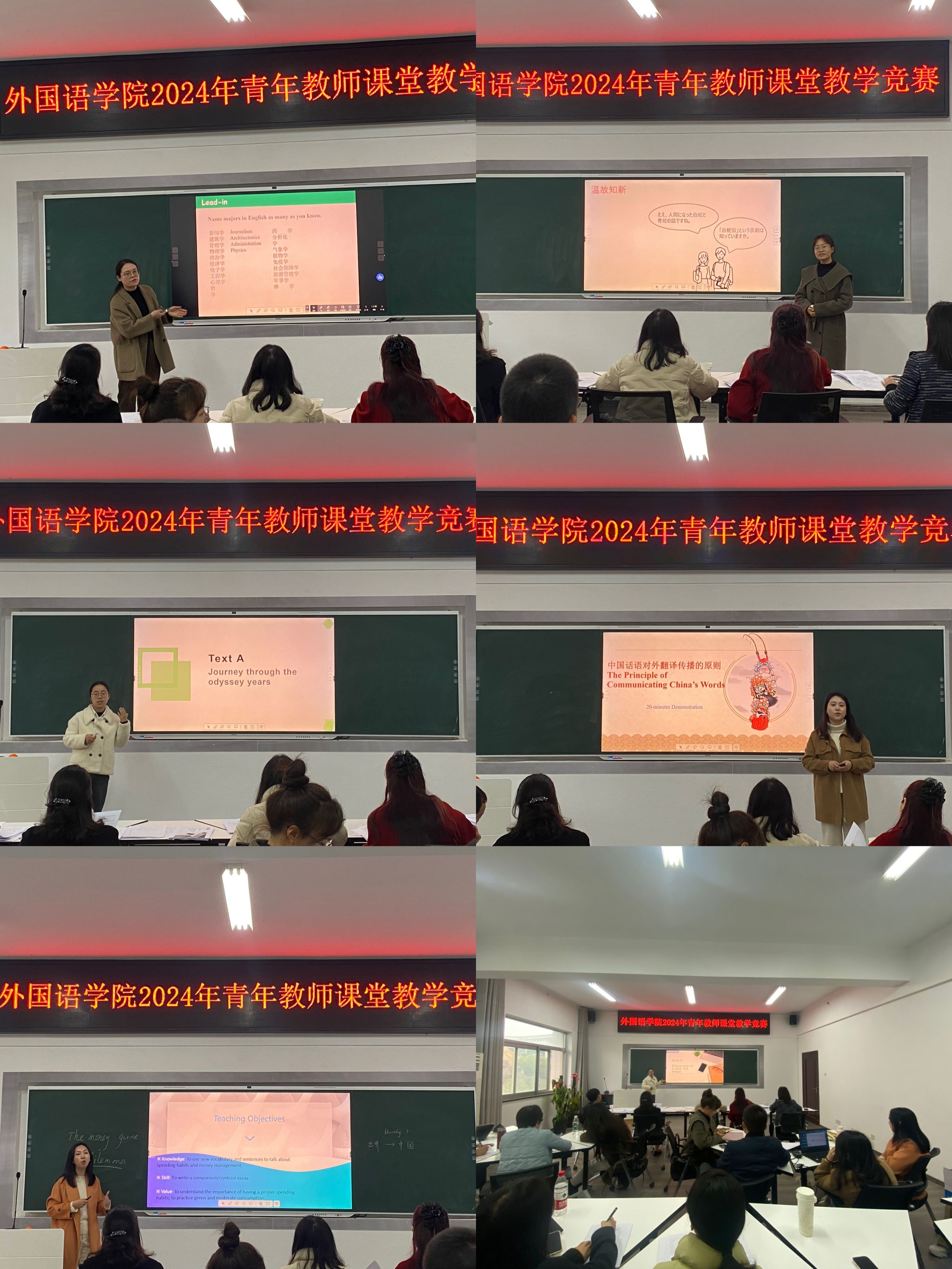 竞赛中,参赛教师分别结合自身授课语种的特点进行了现场课堂教学展示,授课过程中,教师们精神饱满、全情投入,在教学内容呈现、教学设计展示、多媒体资源融合等方面出色发挥,呈现出了一场场内容丰富、专业度高的课堂教学,充分展示了学院青年教师的教学风采。