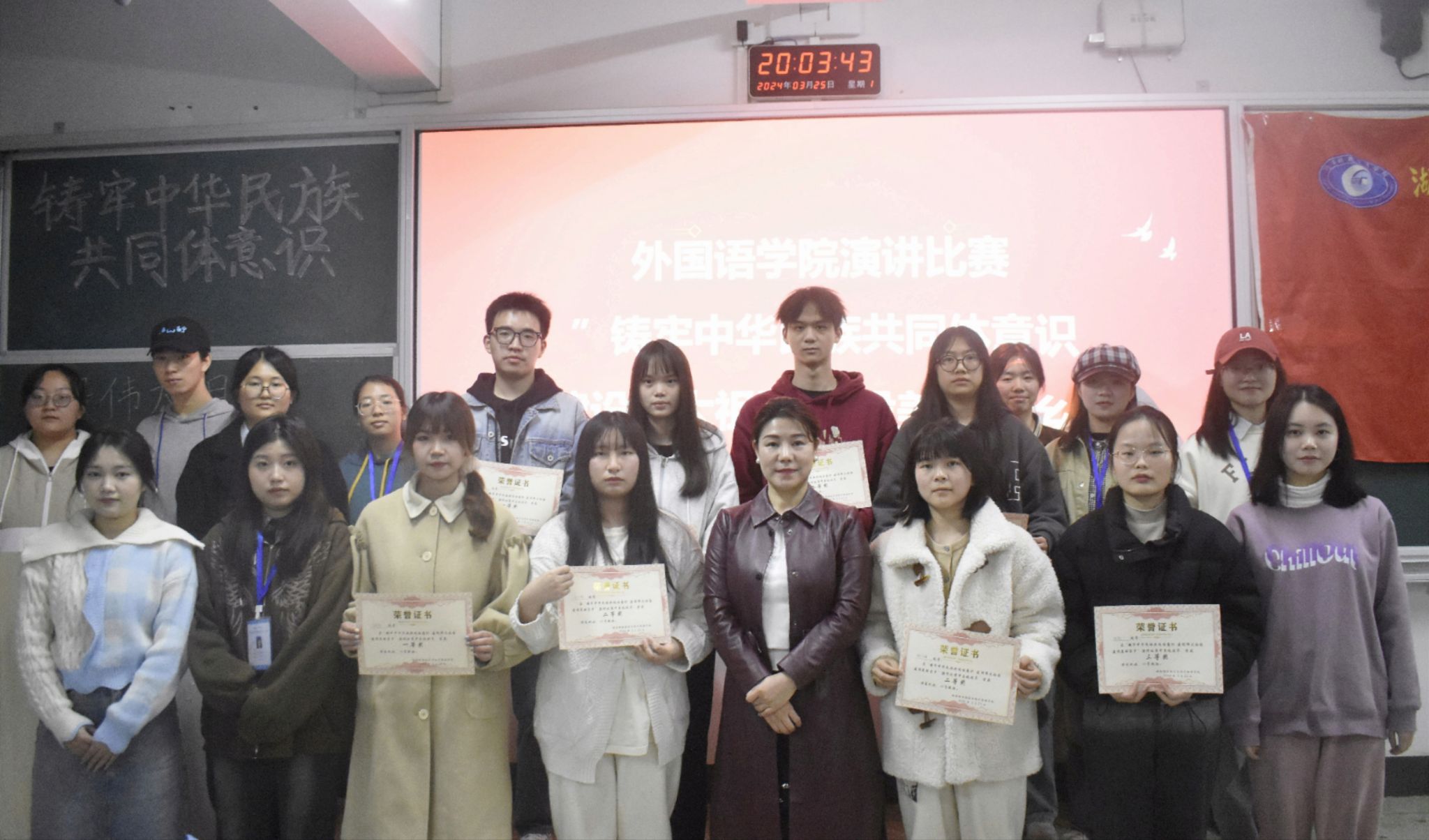 (本网讯)为全面贯彻党的二十大精神,深入开展习近平新时代中国特色社会主义思想主题教育,外国语学院于3月25日晚上7点在3109教室开展以“铸牢中华民族共同体意识,建设伟大祖国,建设美丽家乡”为主题的演讲比赛。外国语学院党委副书记张鹏出席活动。