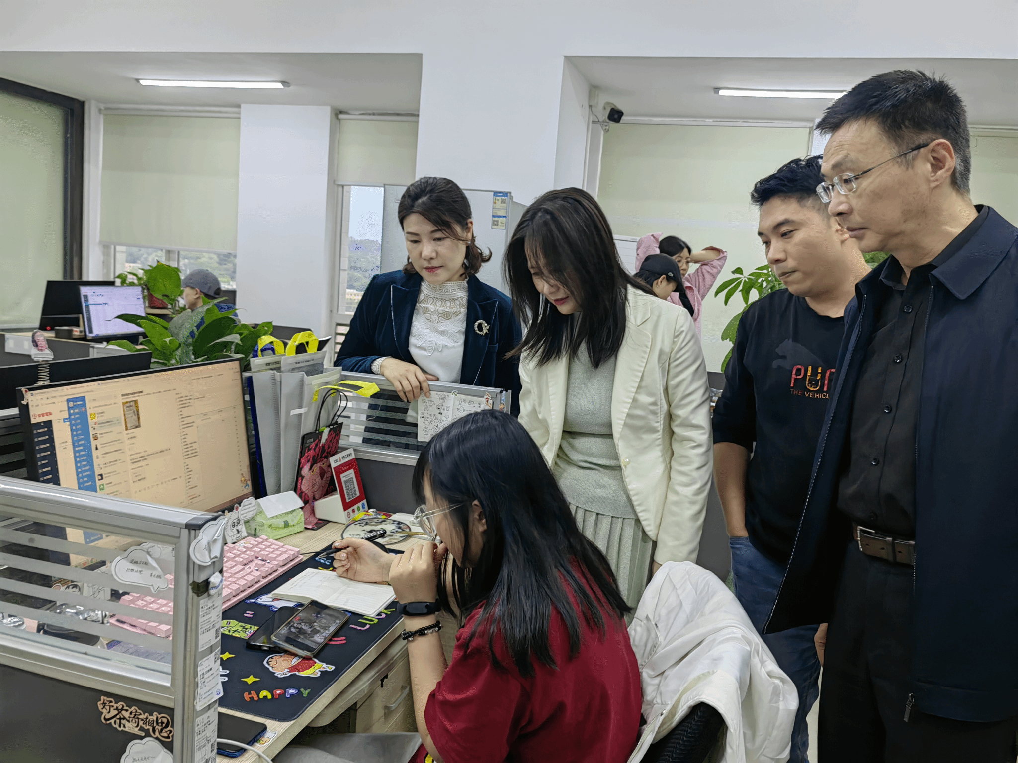 走访中,蒋勇威为实习生送去亲切问候和关怀,并实地察看了实习生的工作环境,详细了解了学生的工作内容、实习生活以及适应程度等方面现状。希望同学们能认真踏实完成实习期间的各项任务,充分利用实习契机,学以致用,不断锤炼自己的专业技能、培养自己的沟通能力,详细询问了学生们在实习过程中遇到的困难和问题,同时鼓励大家尽早适应身份和环境的变化,将所学理论知识与教学实践结合起来,为将来走向工作岗位奠定基础。