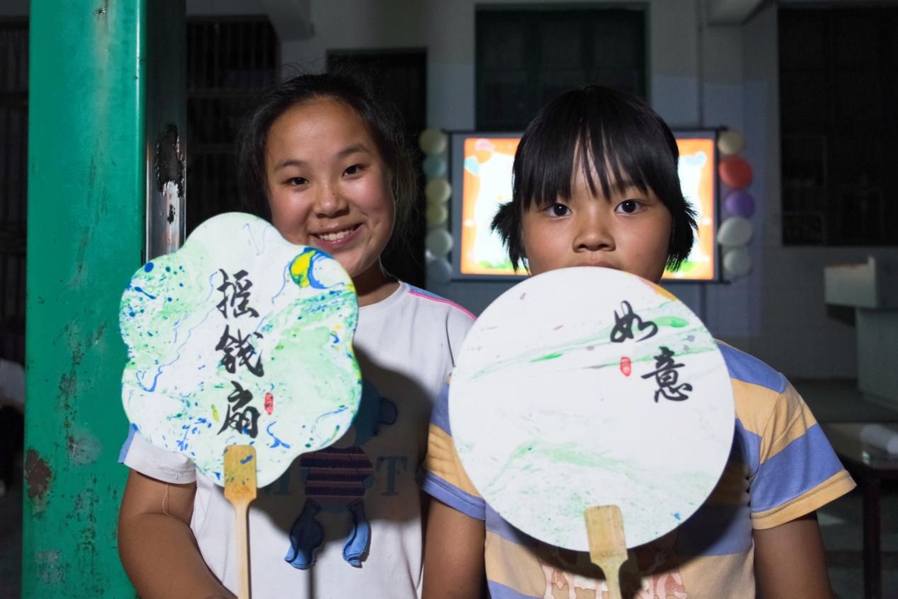 7月14日晚,志愿者们为小朋友们举办了一场以“非遗漆扇”为主题的星光分享会,为当地儿童带来了一场别开生面的文化盛宴。