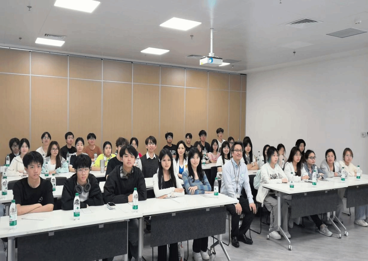 在随后的提问环节中,同学们踊跃举手,条理清晰地提出自己的疑问。整个答疑过程中,手塚先生不仅用扎实的专业知识为同学们拨开迷雾,更以职场前辈的视角,分享了许多课本外的宝贵经验。现场互动频繁,思维的火花不断碰撞,交流氛围空前热烈。