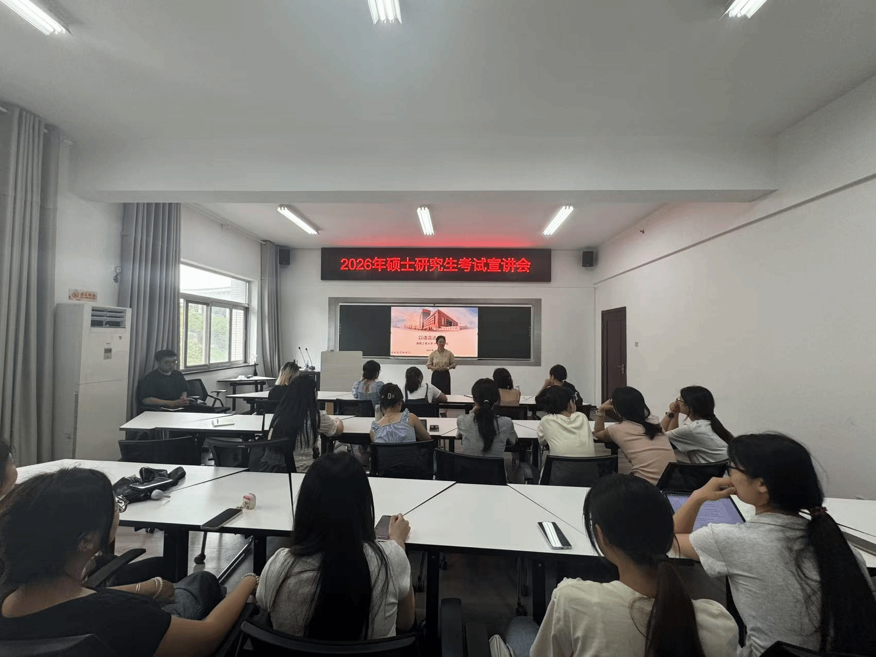 李曦首先对湖南工商大学外国语学院一行表示欢迎随后对考研学子们进行鼓励为在场学子注入强大的精神动力