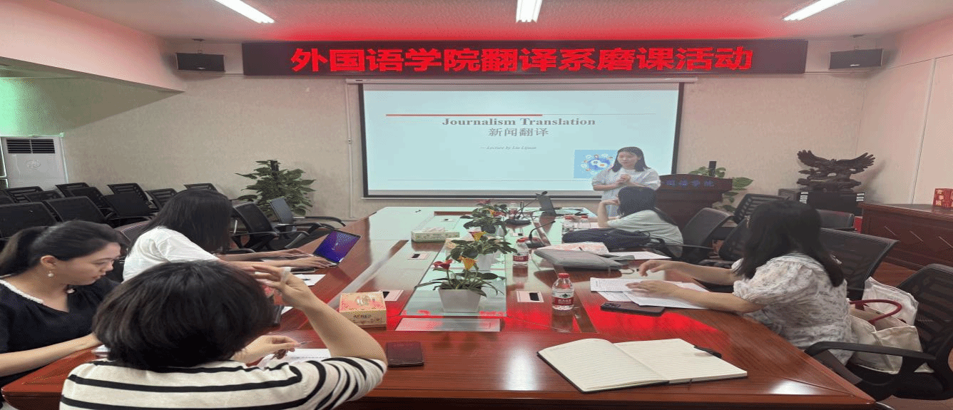 (本网讯)为深入贯彻落实“以学生为中心”的教育教学理念,全面提升教师教学能力与课程建设质量,外国语学院翻译系于7月4日上午,在办公楼315会议室成功举办教学磨课研讨活动。本次活动由翻译系主任孙际惠老师主持,副院长李曦教授全程参与指导。