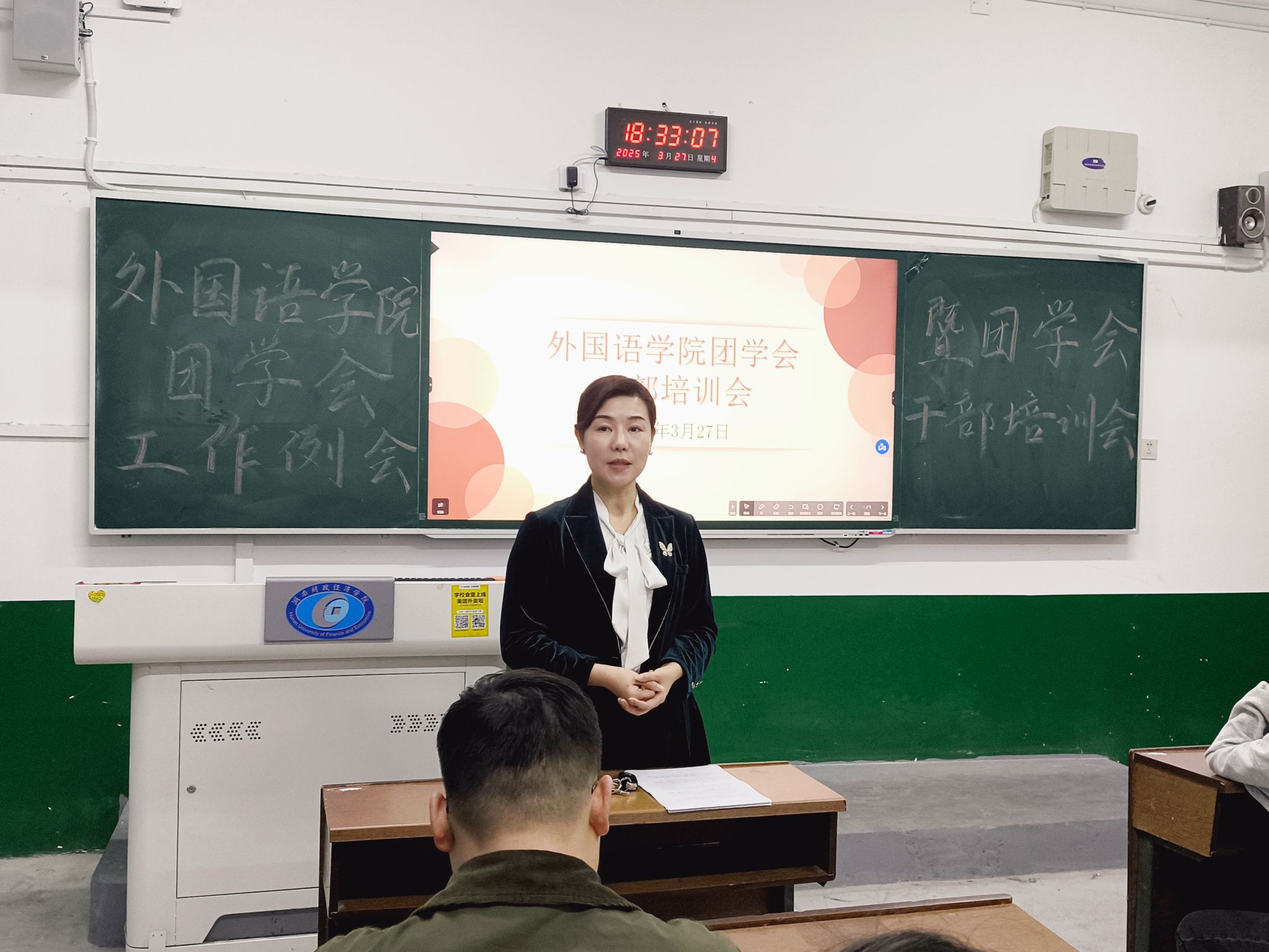 为进一步筑牢学生干部思想根基,提升业务实操能力,科学部署下一阶段重点工作任务,3月27日晚,外国语学院团学会工作例会暨干部培训会议在一教1107教室举行。会议分为工作例会与干部培训两大环节,旨在明晰职责边界、增强团队协同效能,全方位提升学生干部综合素养,为后续工作的高效推进夯基垒台。本次会议由外国语学院党委副书记张鹏主讲,团总支书记胡文志主持,全体团学会干部参会。