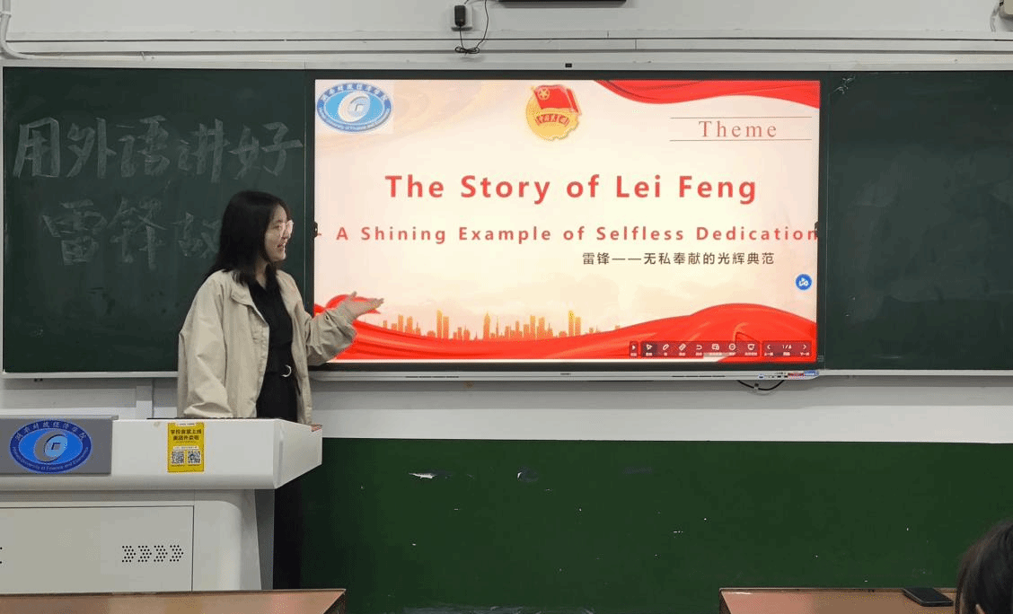 为了深入弘扬雷锋精神,激励广大学生在学习思考与实践感悟中坚定理想信念,3月27日下午6点,外国语学院于1107教室开展了以“用外语讲好雷锋故事”为主题的演讲活动。外国语学院团总支书记胡文志到场参加。