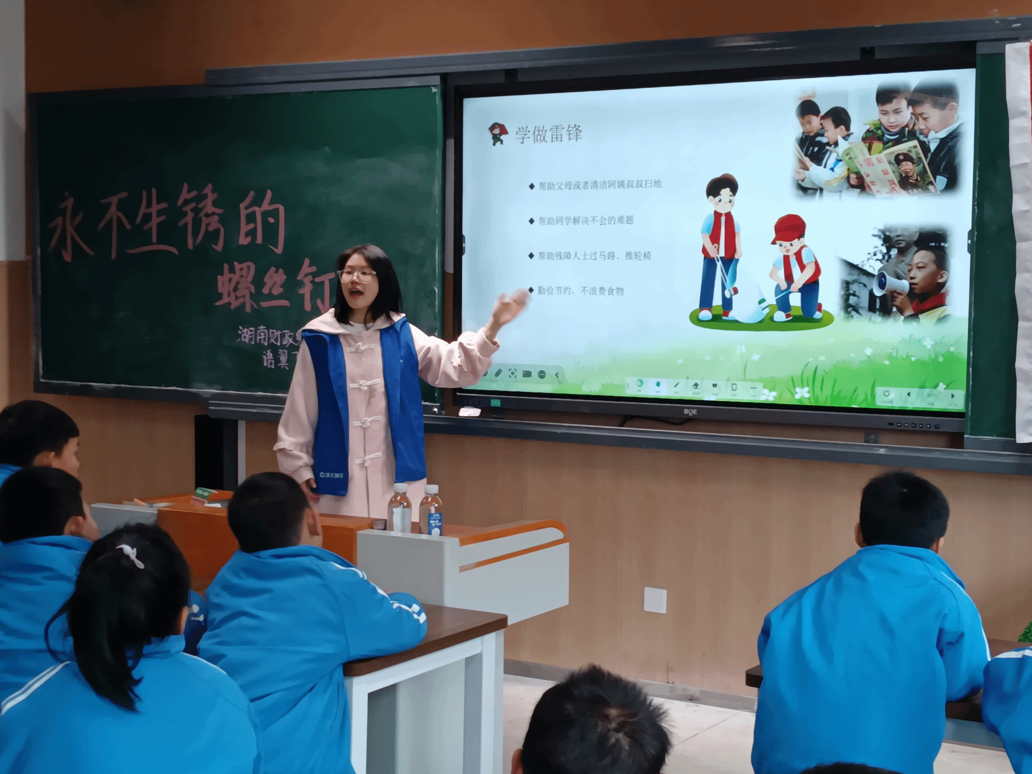 为大力弘扬雷锋精神,推动志愿服务与青少年德育教育深度融合,3月31日上午,WilliamHill官方网站外国语学院“语翼飞翔”志愿服务队四名志愿者走进岳麓区枫林一小,以“故事启智+趣味互动”形式开展雷锋精神主题宣讲活动。