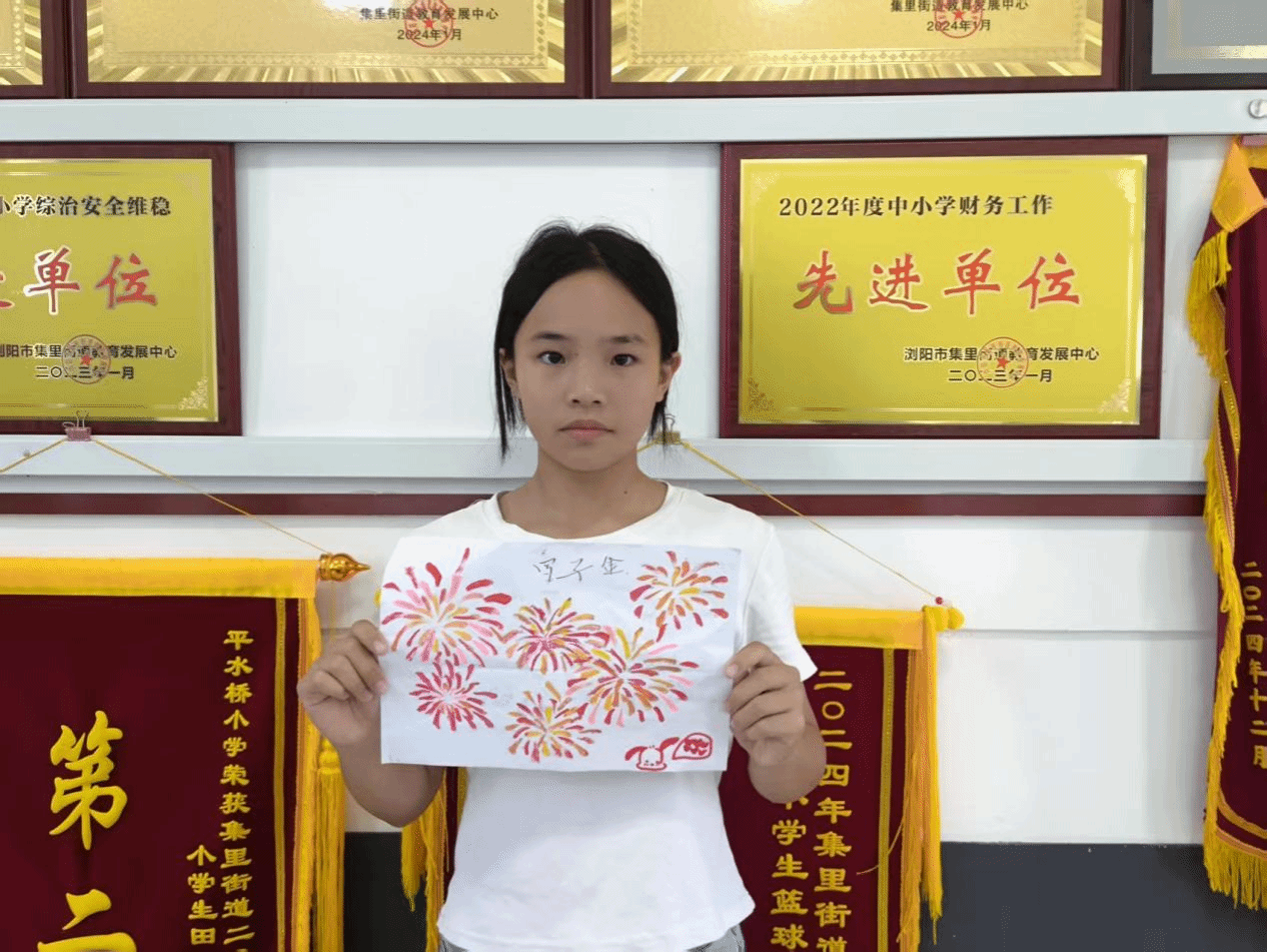 文化传承板块则以浏阳烟花非遗技艺为切入点。志愿者团队通过播放相关非遗录制视频,现场拆解烟花绽放的物理轨迹与色彩构成原理。孩子们在志愿者指导下,用渐变色水粉表现烟花升空的动态过程,以几何线条解构传统一炷香造型。孩子们手执画笔,画出了自己心目中最美的烟花模样。11岁的罗子金笑着展示自己的烟花作品:我要把这幅画送给我最喜欢的奶奶