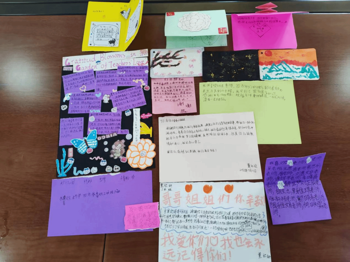 离别时刻,孩子们的手绘感谢卡铺满会议室长桌。“老师,我学会了用彩笔勾勒家乡的烟花!”二年级学生李天佑的留言让队员热泪盈眶。离校结业仪式上,平水桥完全小学林校长向支教团队表示感谢:“感谢你们让孩子们度过了一段充实的暑假,期望你们的教育生涯一帆风顺。”这些质朴的馈赠,化作队员们最珍贵的行囊。支教队员曹恩彩在支教手册中写道:“当看到留守儿童在家庭树作业中认真描绘父母模样时,我读懂了教育最本真的温度。”