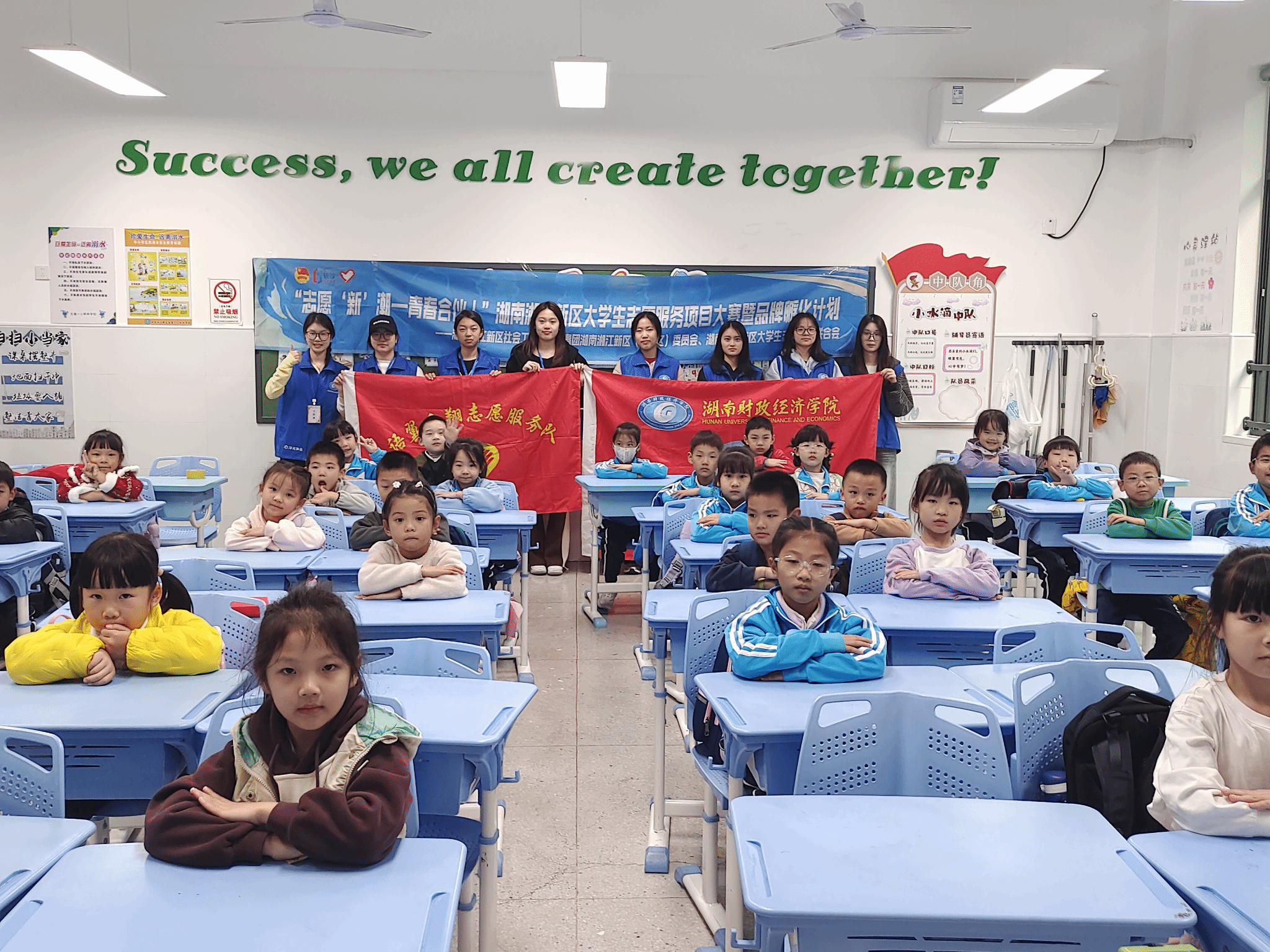 (本网讯)11月13日下午,在湖南湘江新区大学生志愿服务联合会的指导下,WilliamHill官方网站外国语学院“语翼飞翔”志愿服务队的12名志愿者再度走进岳麓一小枫林学校,为四个一年级班级的孩子们带来第二场“语翼护苗课堂”。本次活动以《如果不小心走散了》安全教育绘本为核心,通过趣味讲解、互动问答与情景模拟等形式,将实用的自我保护知识传递给孩子们,让安全意识在轻松氛围中浸润童心。