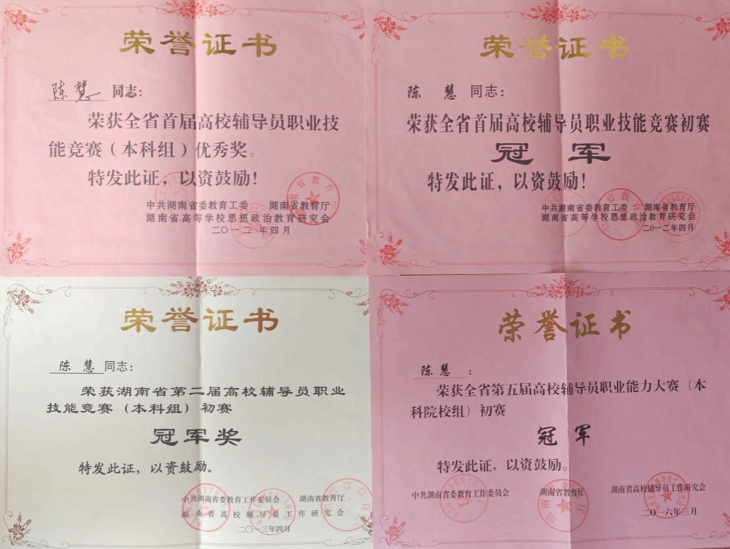 陈慧,中共党员,助理研究员,国家二级心理咨询师,现任计算机与人工智能学院学工办副主任。深耕辅导员岗位二十一年,主持省级课题2项、参与10余项,发表学术论文10篇(其中CSSCI/CSCD、北大核心各1篇),获评湖南省高校学生思想政治教育优秀案例,湖南省首届高校辅导员职业技能竞赛本科组竞赛优秀奖,湖南省高校辅导员工作研究与实践先进个人,多次获评校“优秀辅导员”“优秀共产党员”“心理健康教育先进个人”等荣誉称号。所带班级多次获评校先进班集体、五四红旗团支部,指导的“爱心接力队”三下乡团队获评全国大中专学生志愿者暑假“三下乡”社会实践活动优秀团队。