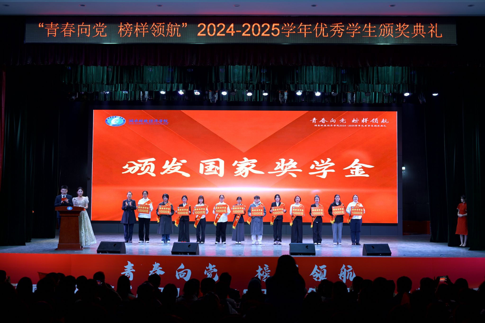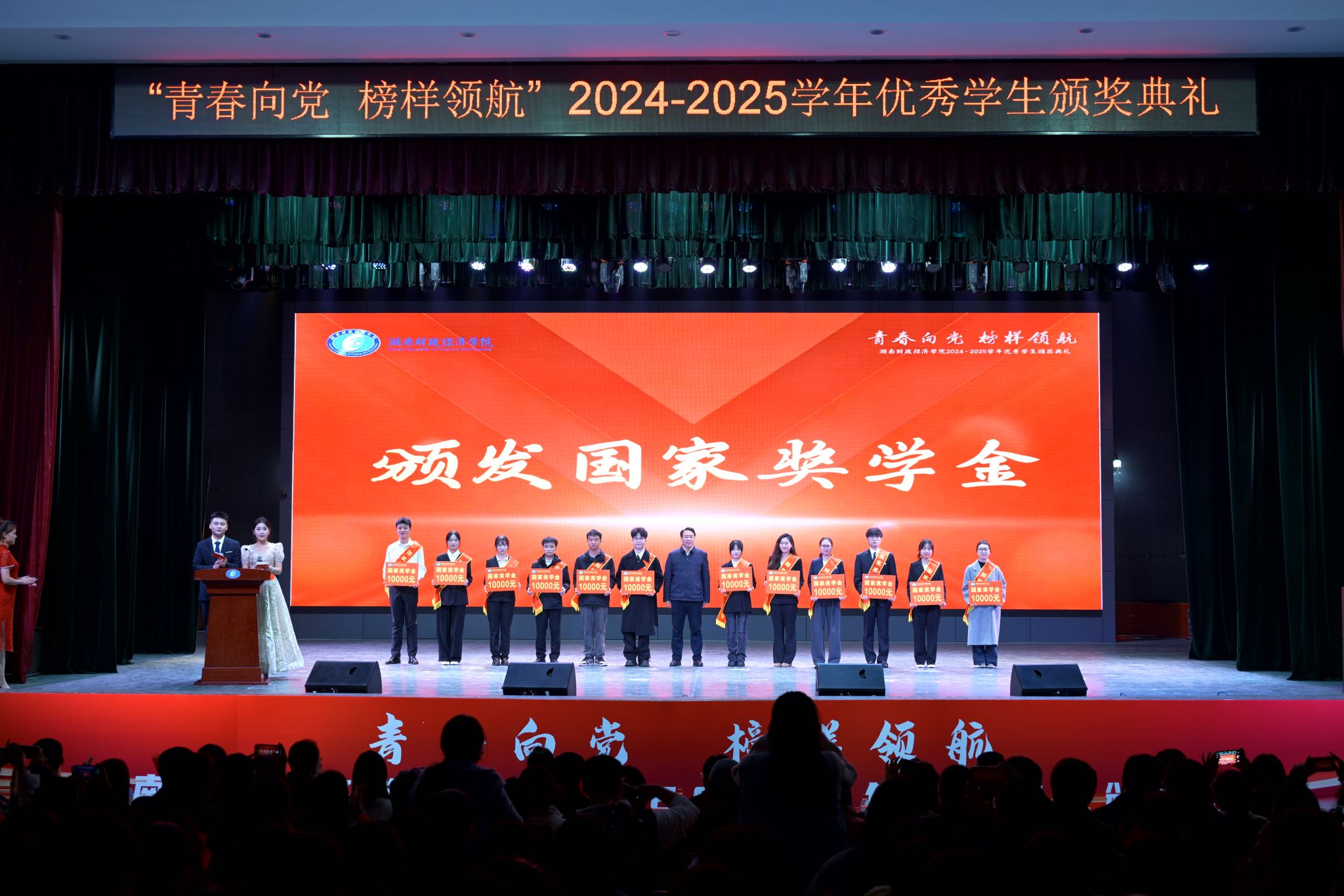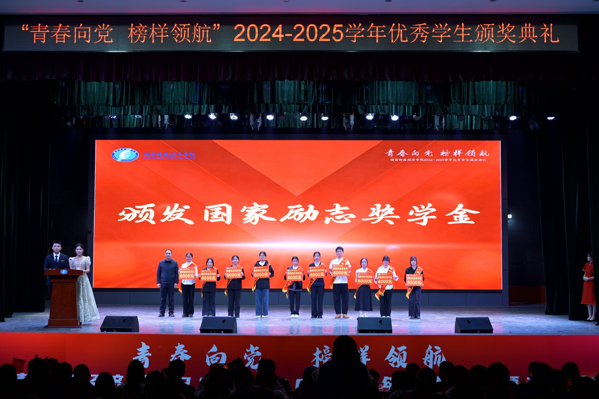 据悉,2024-2025学年,经各二级学院择优推荐、学校严格评审,共评选出国家奖学金56人、国家励志奖学金662人、校级奖学金3639人、先进集体342个、先进个人3610人。这些数字背后,是每一位财院学子脚踏实地、砥砺前行的生动写照。