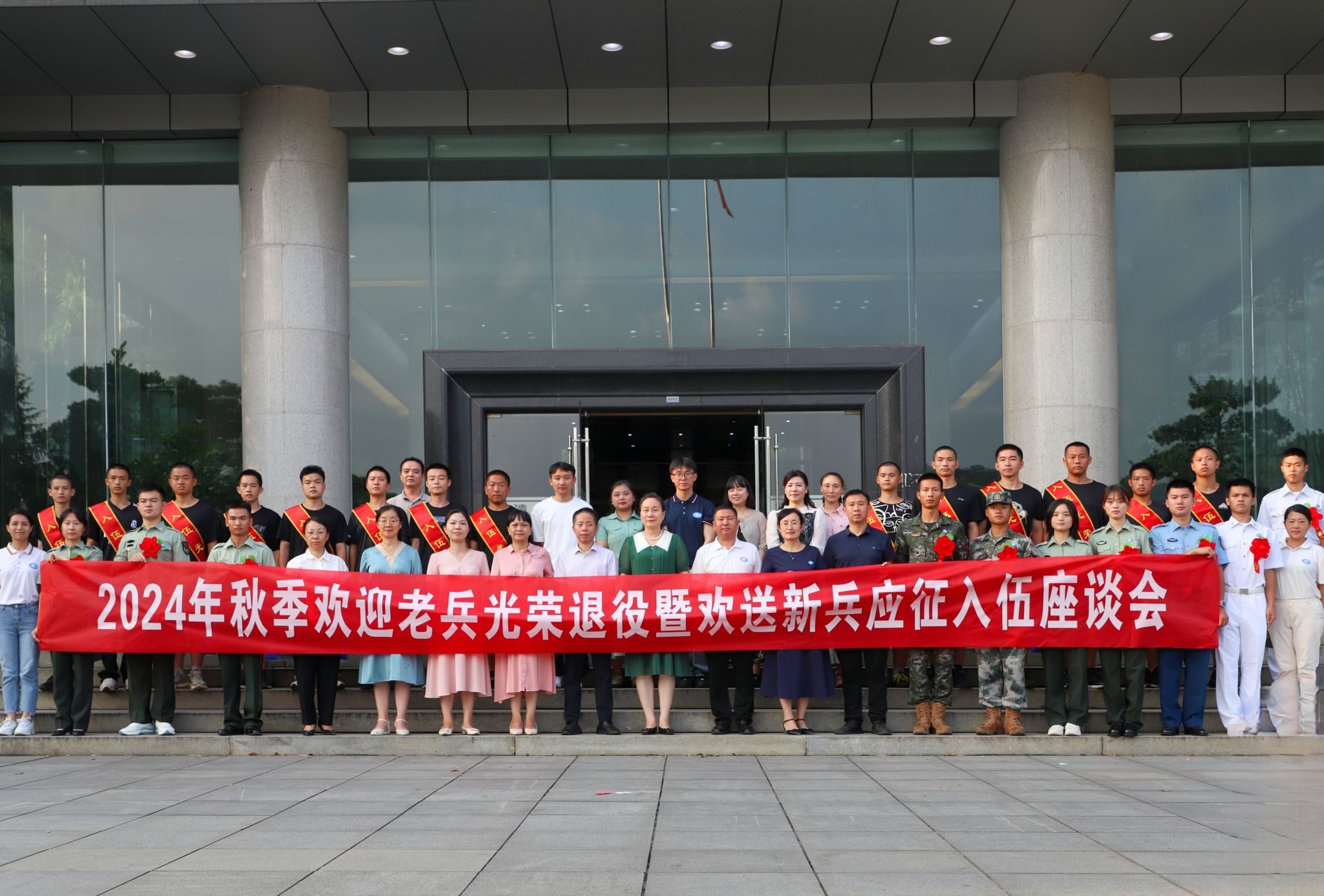 随后,由退役老兵为入伍新兵佩戴“入伍光荣”绶带,赠送纪念品。
