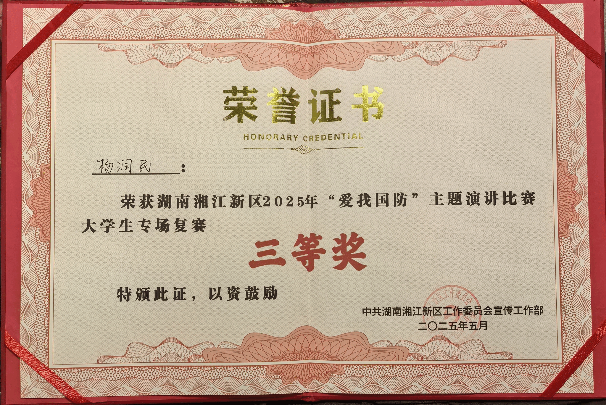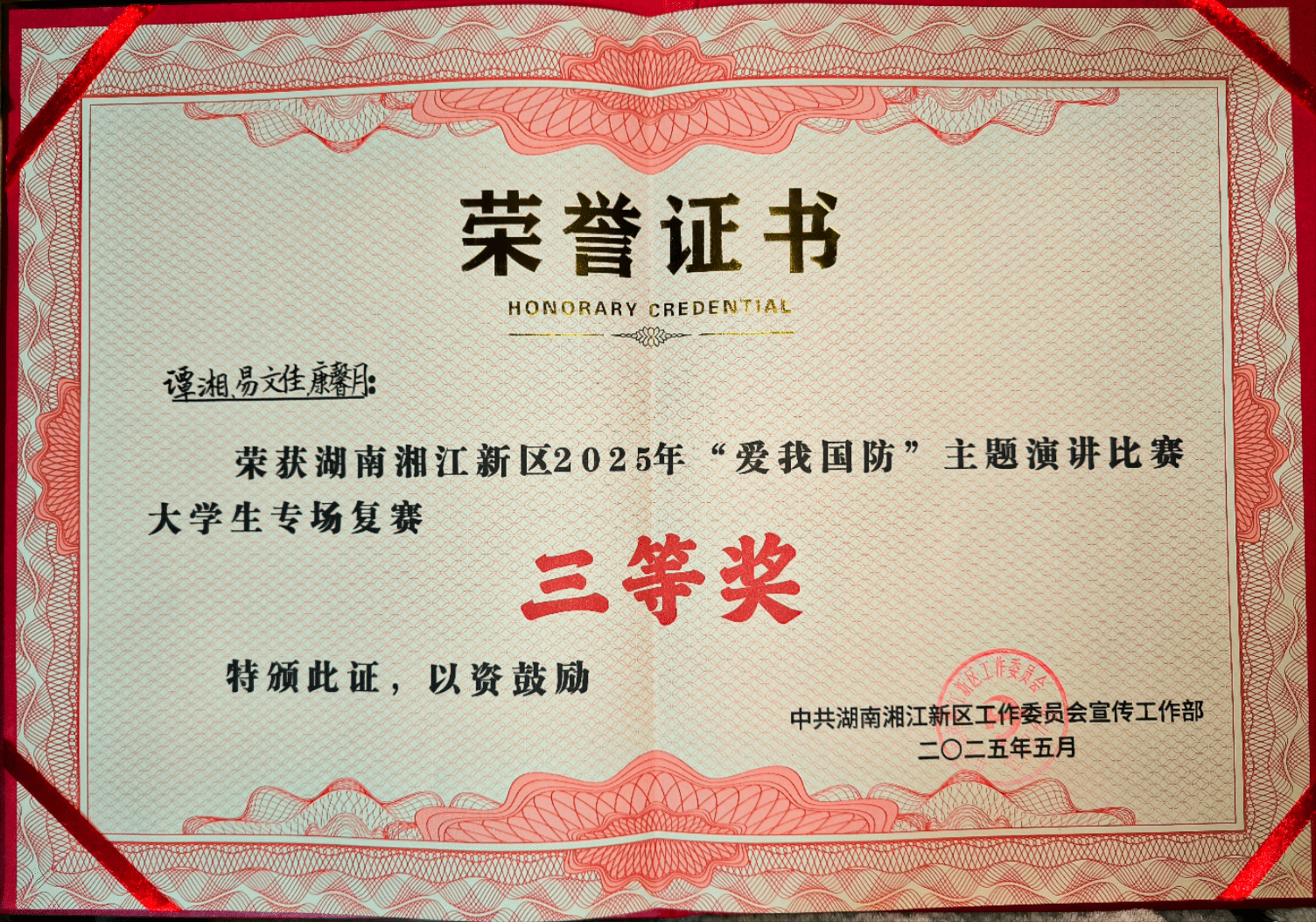 (本网讯)近日,湖南省湘江新区2025年“爱我国防”演讲比赛大学生专场在湘江新区文化馆圆满落幕,WilliamHill官网共推送两组参赛队伍(选手)参赛。