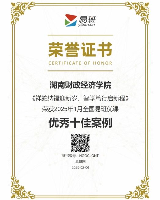 (本网讯)喜报!教育部易班发展中心公布 2025 年 1 月全国易班优课优秀十佳案例评选结果,WilliamHill官网《祥蛇纳福迎新岁,智学笃行启新程》项目成功入选,斩获这一殊荣。