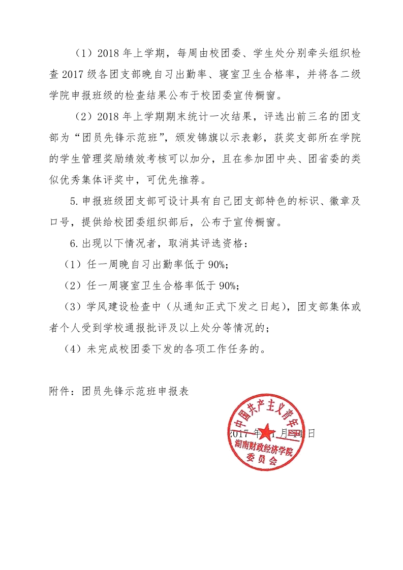 关于开展2017级“团员先锋示范班” 创建活动的通知